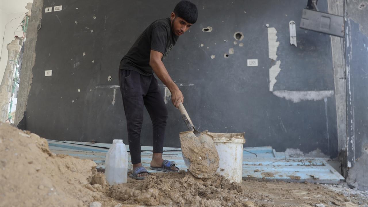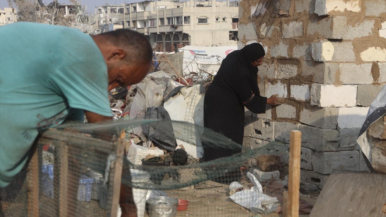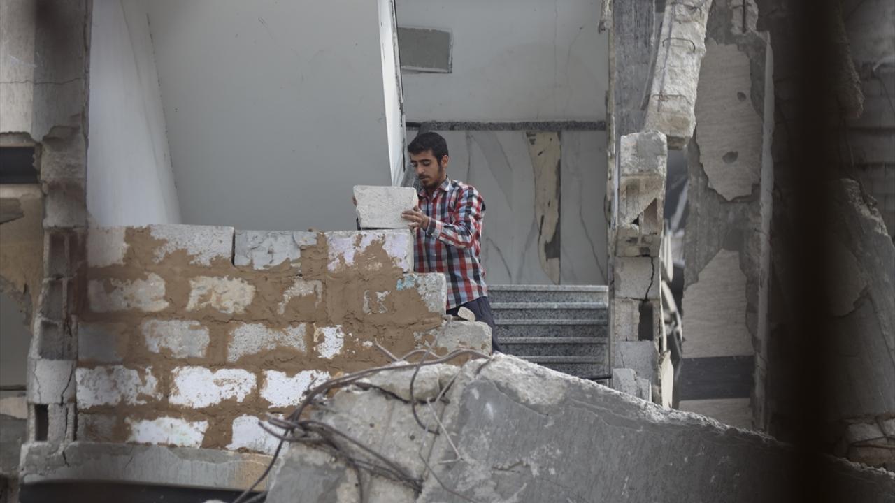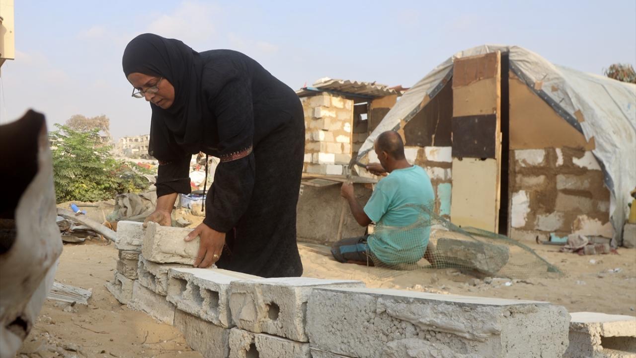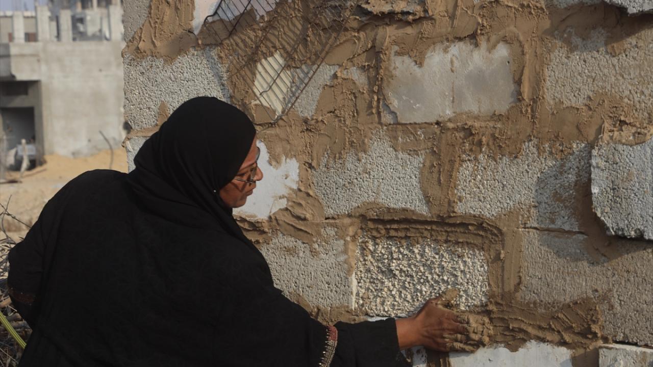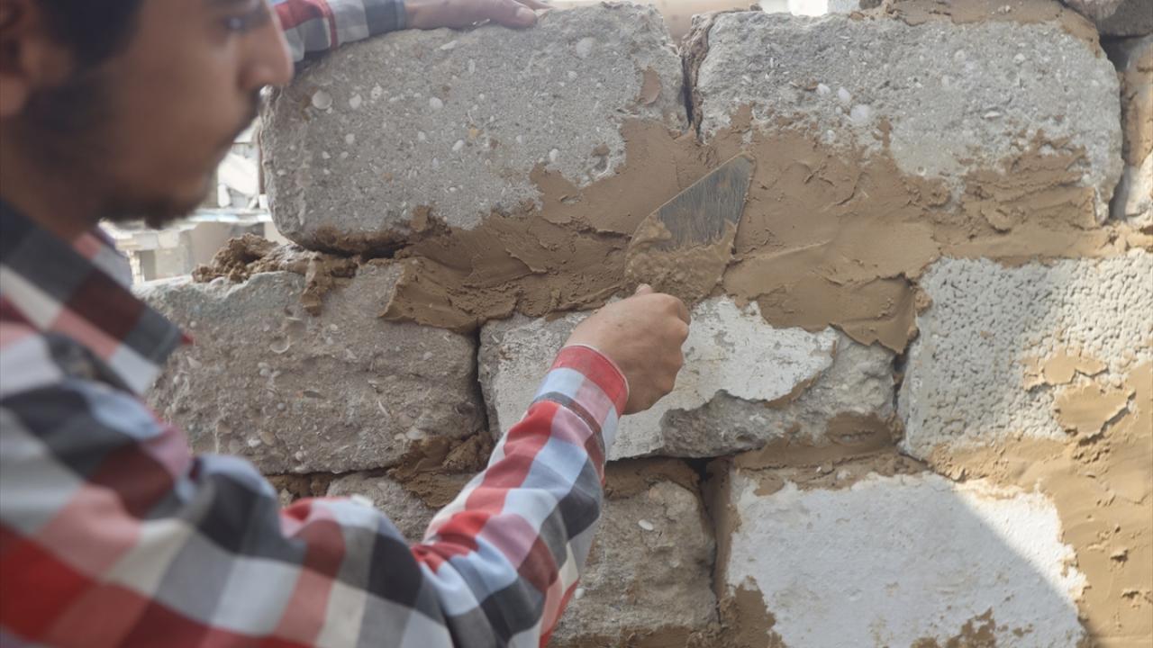 İsrail saldırılarında evleri yıkılan Han Yunus kentindeki Filistinliler, inşaat malzemelerinin bölgeye girişinin izin verilmemesi nedeniyle çamur ve yıkılan evlerin enkazından topladıkları tuğlalarla evlerini yeniden inşa etmeye çalışıyor.