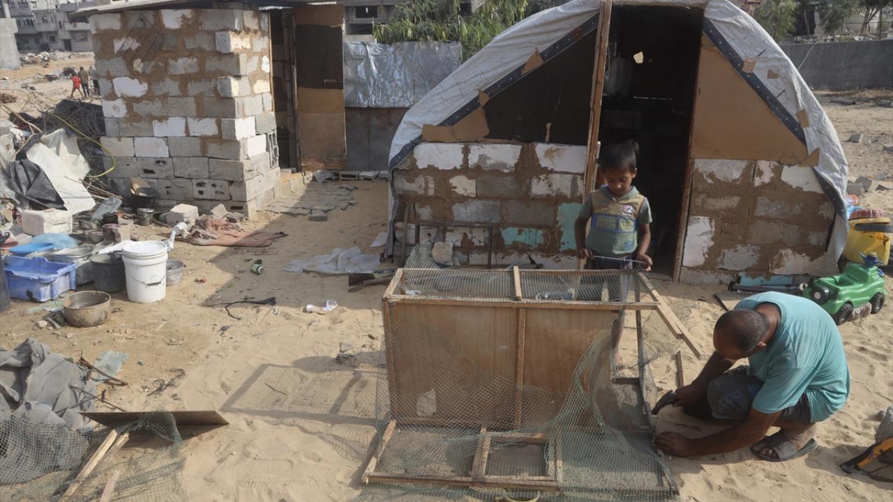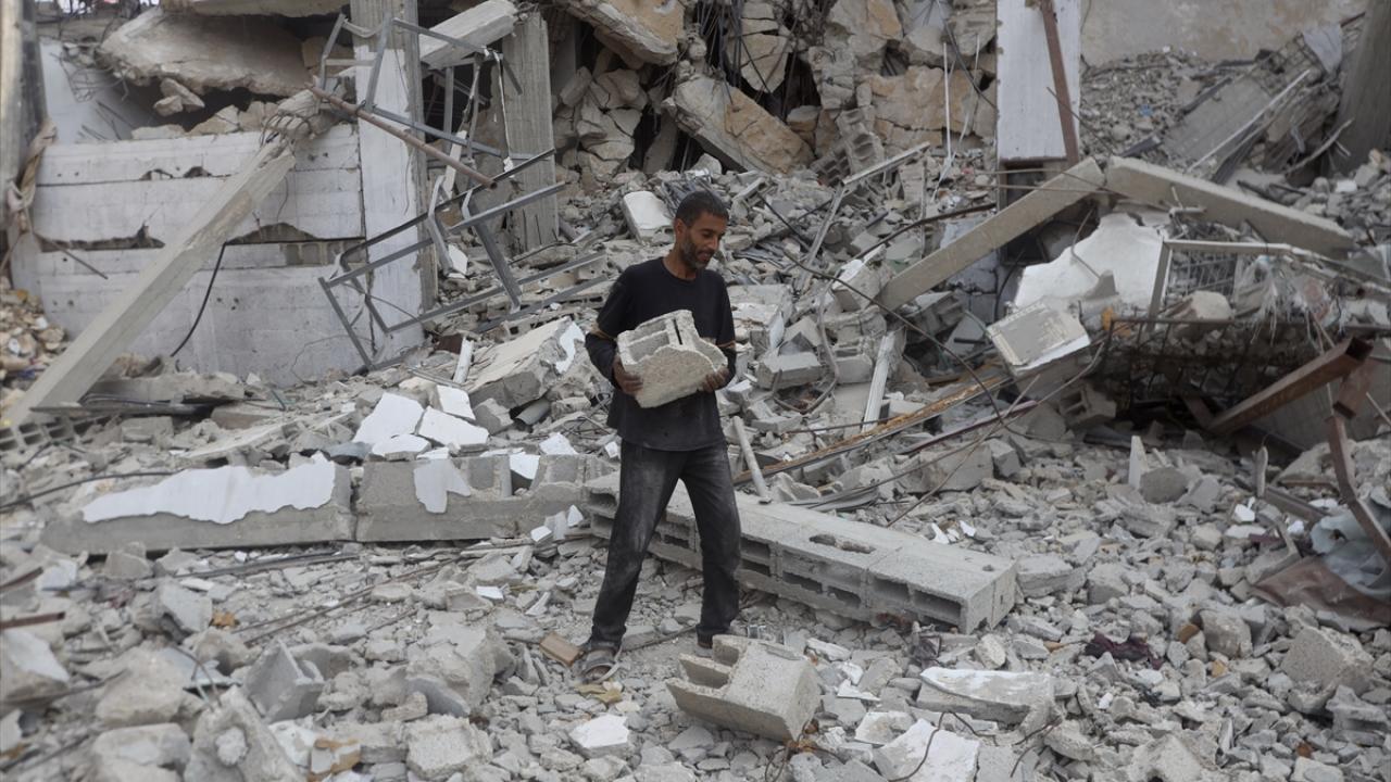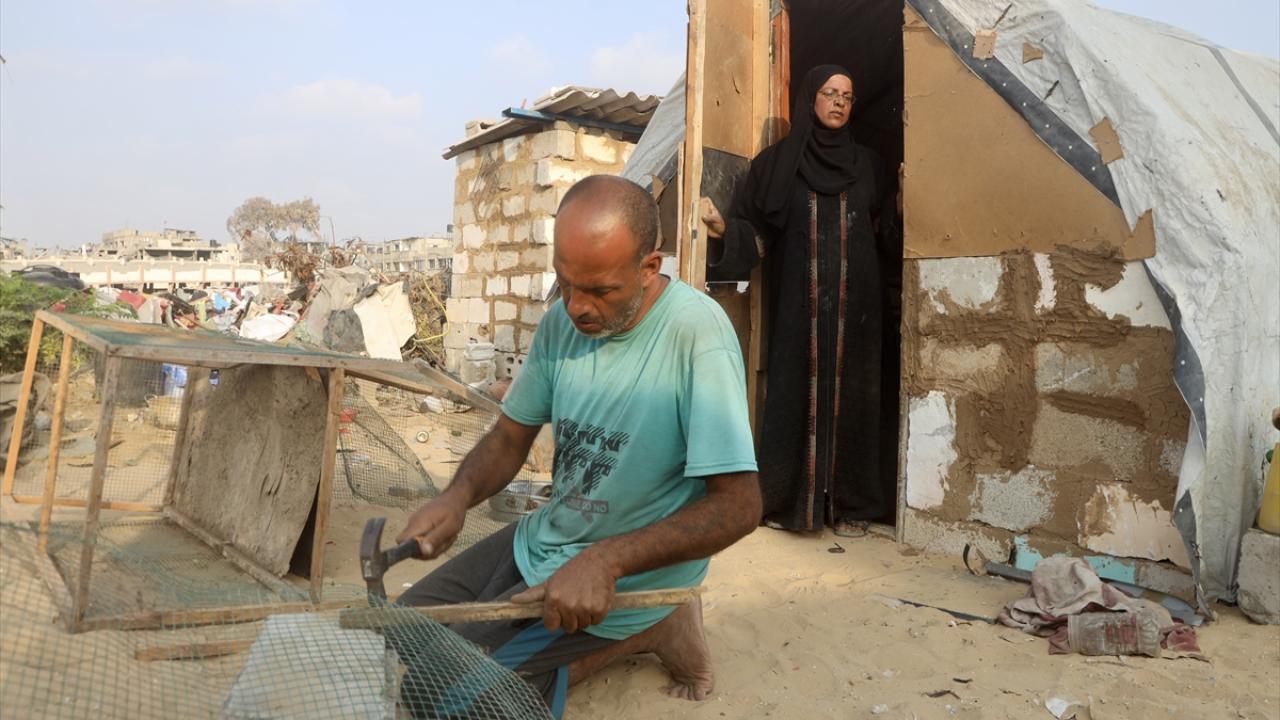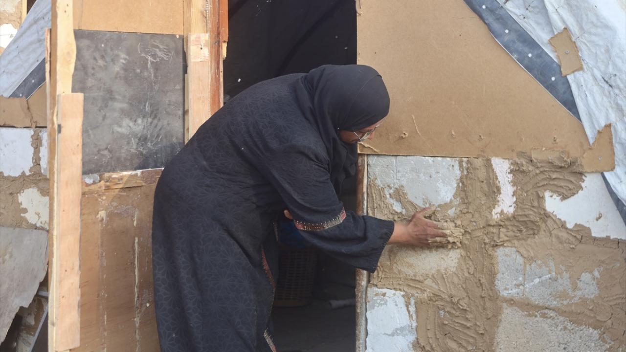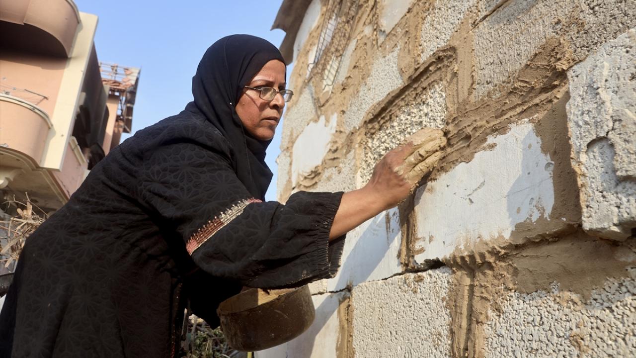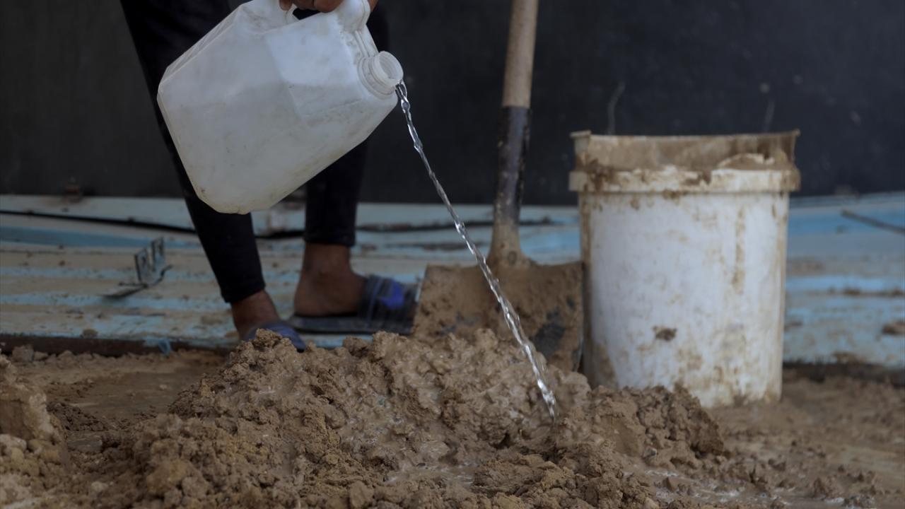 İsrail saldırılarında evleri yıkılan Han Yunus kentindeki Filistinliler, inşaat malzemelerinin bölgeye girişinin izin verilmemesi nedeniyle çamur ve yıkılan evlerin enkazından topladıkları tuğlalarla evlerini yeniden inşa etmeye çalışıyor.
