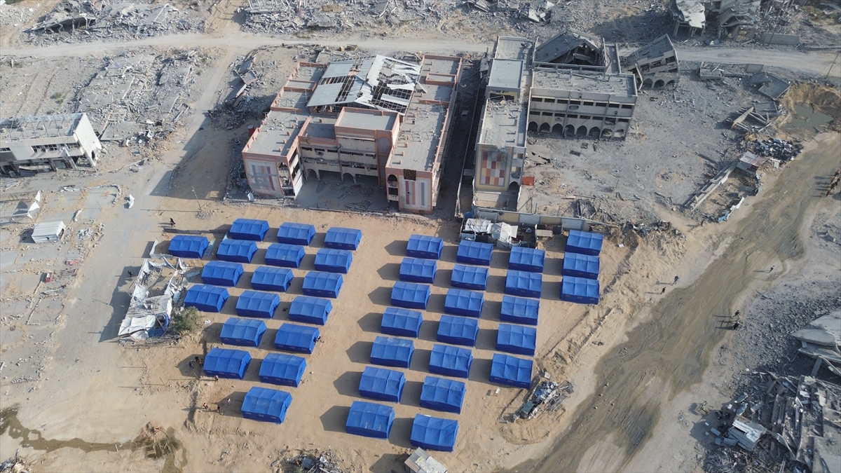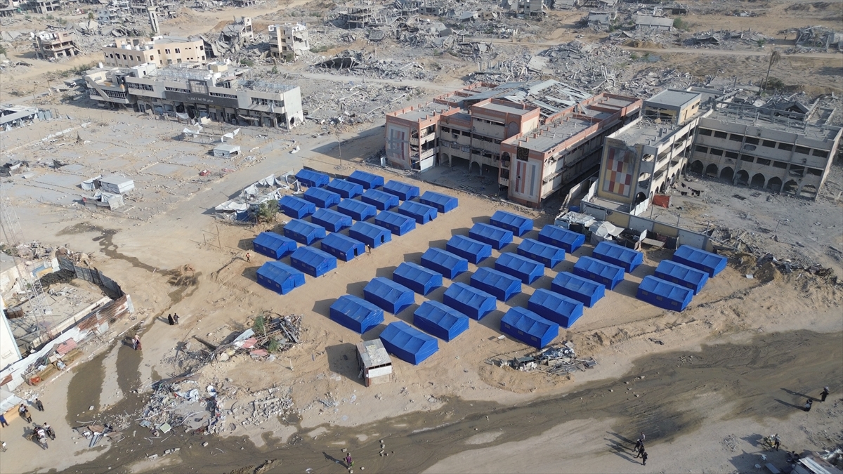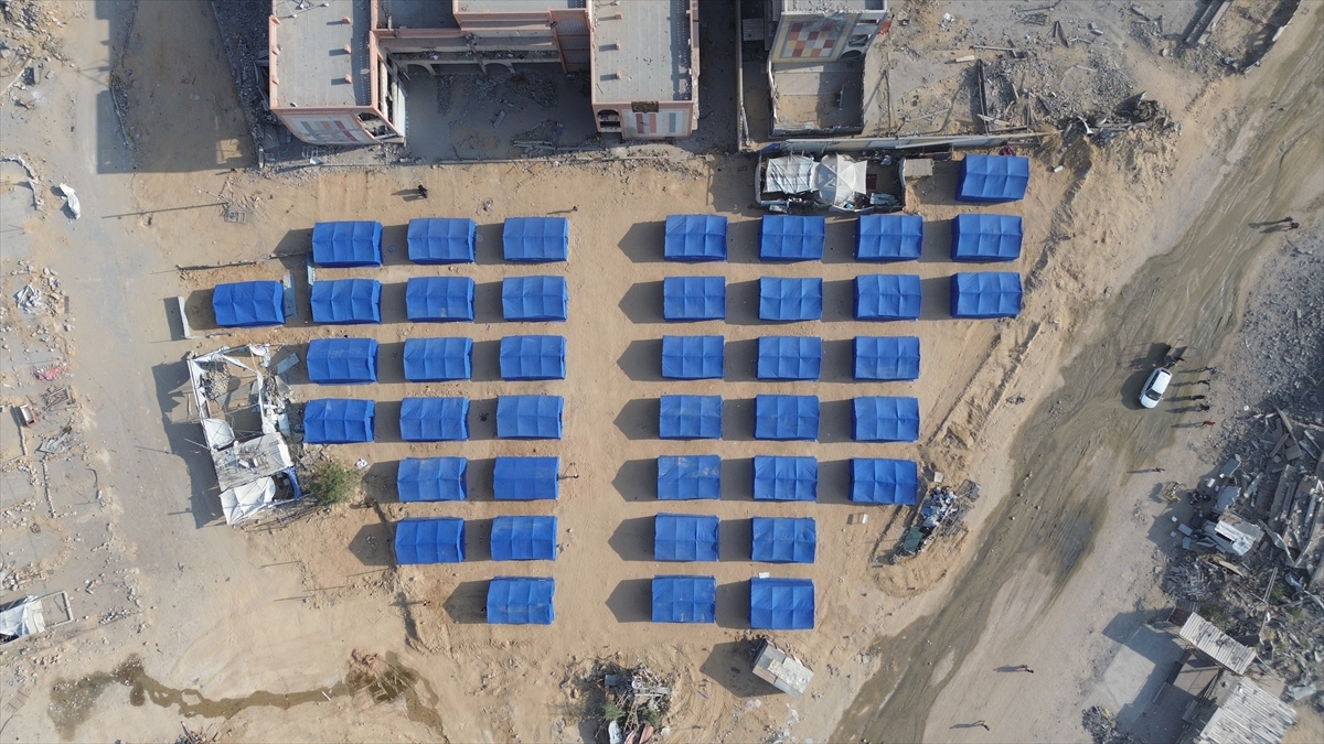 Gazze Şeridi'nin güneyinde yer alan Han Yunus kentinde bir hayır kurumu tarafından, savaşta evlerini kaybeden yerinden edilmiş Filistinli ailelerin barınabilmesi için çadır kent kuruldu.