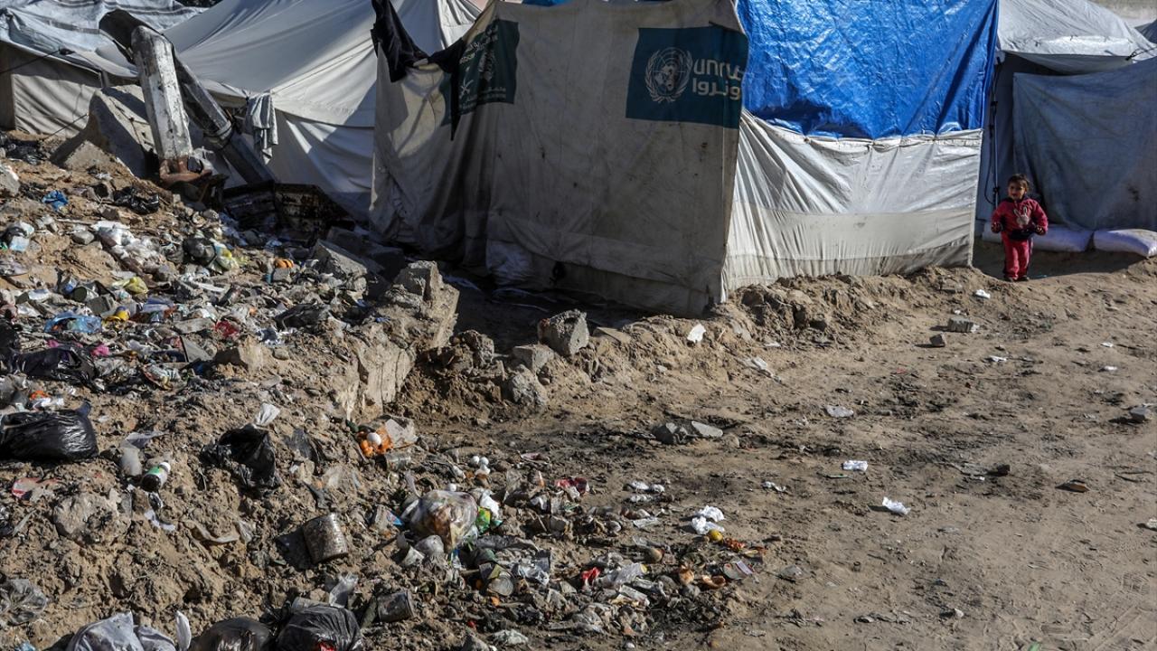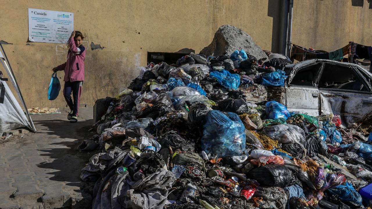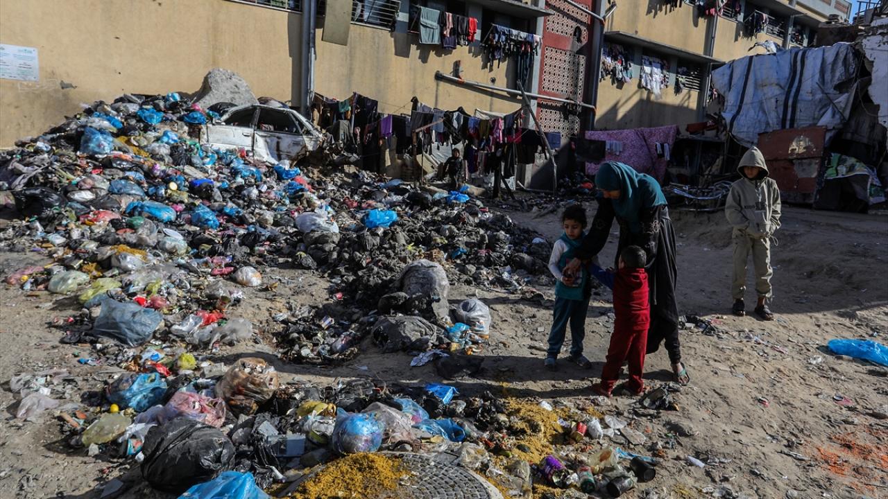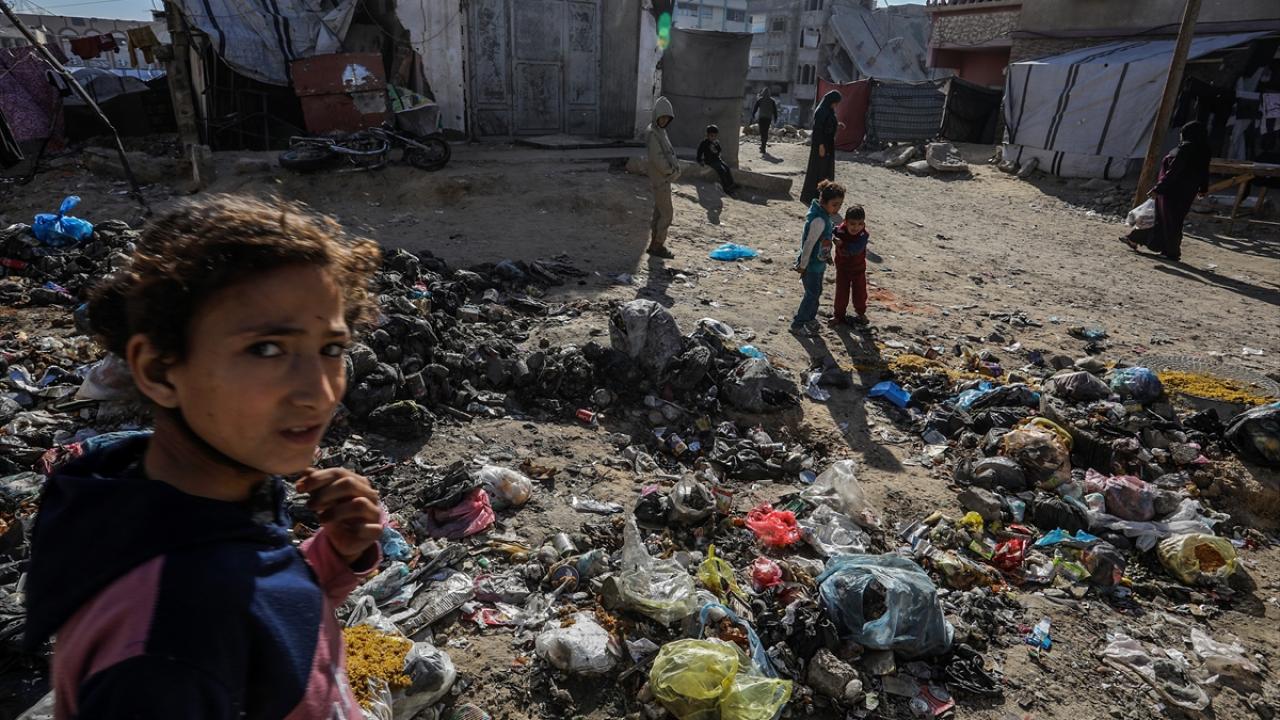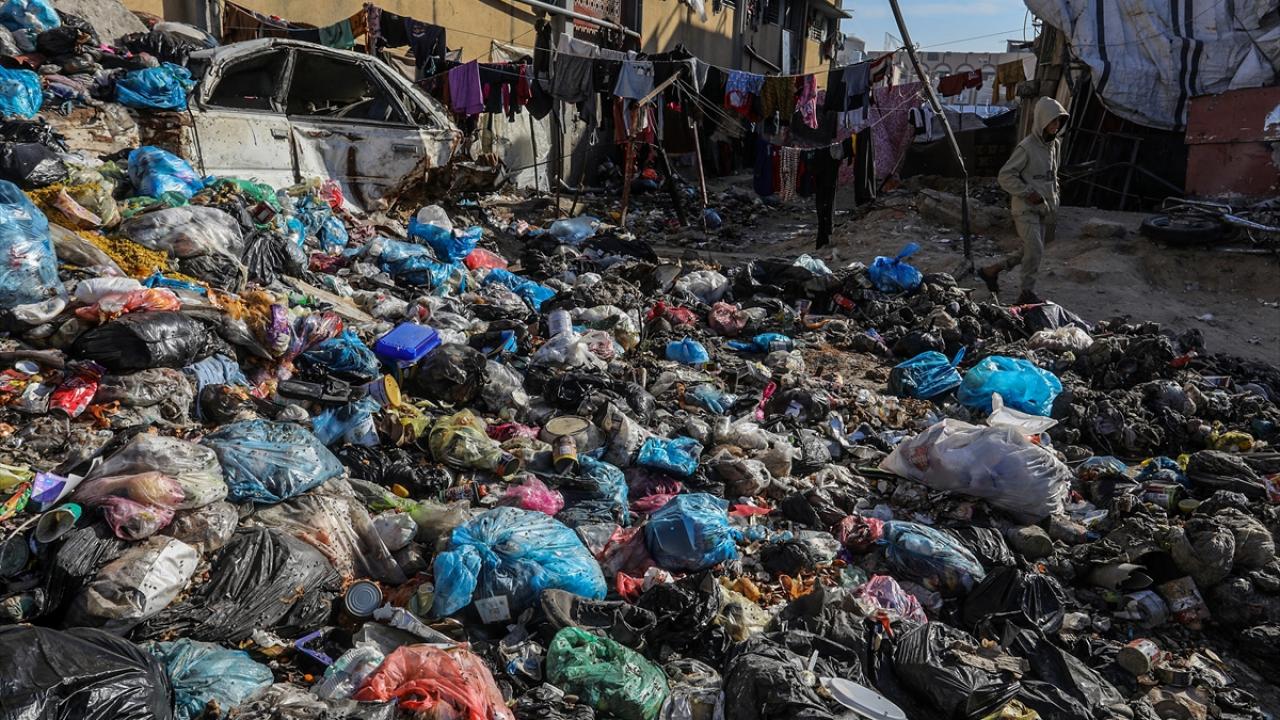 Gazze Şeridi’nin güneyindeki Han Yunus kentinde, yerinden edilen Filistinlilerin kurduğu çadırların çevresinde biriken çöpler ve yayılan kanalizasyon suları, kronik hastalıklara yol açarken sivrisinek ve haşerelerin artmasına neden oluyor.