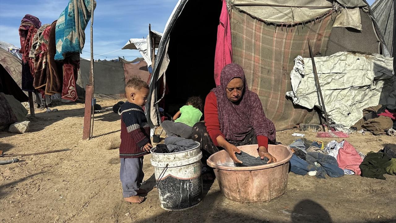 Son yağışlarla birlikte çadırlarına su dolan siviller, içme suyu ve temel ihtiyaçlara erişimde ciddi zorluklarla karşılaşıyor.
