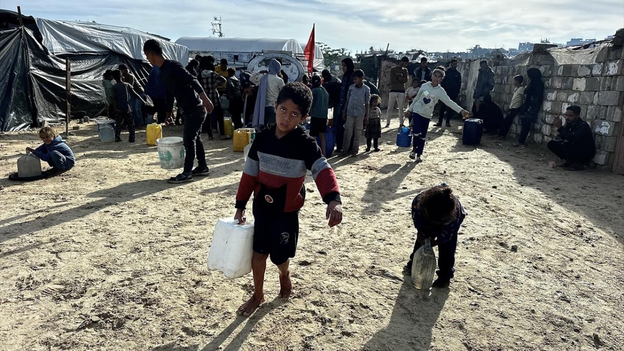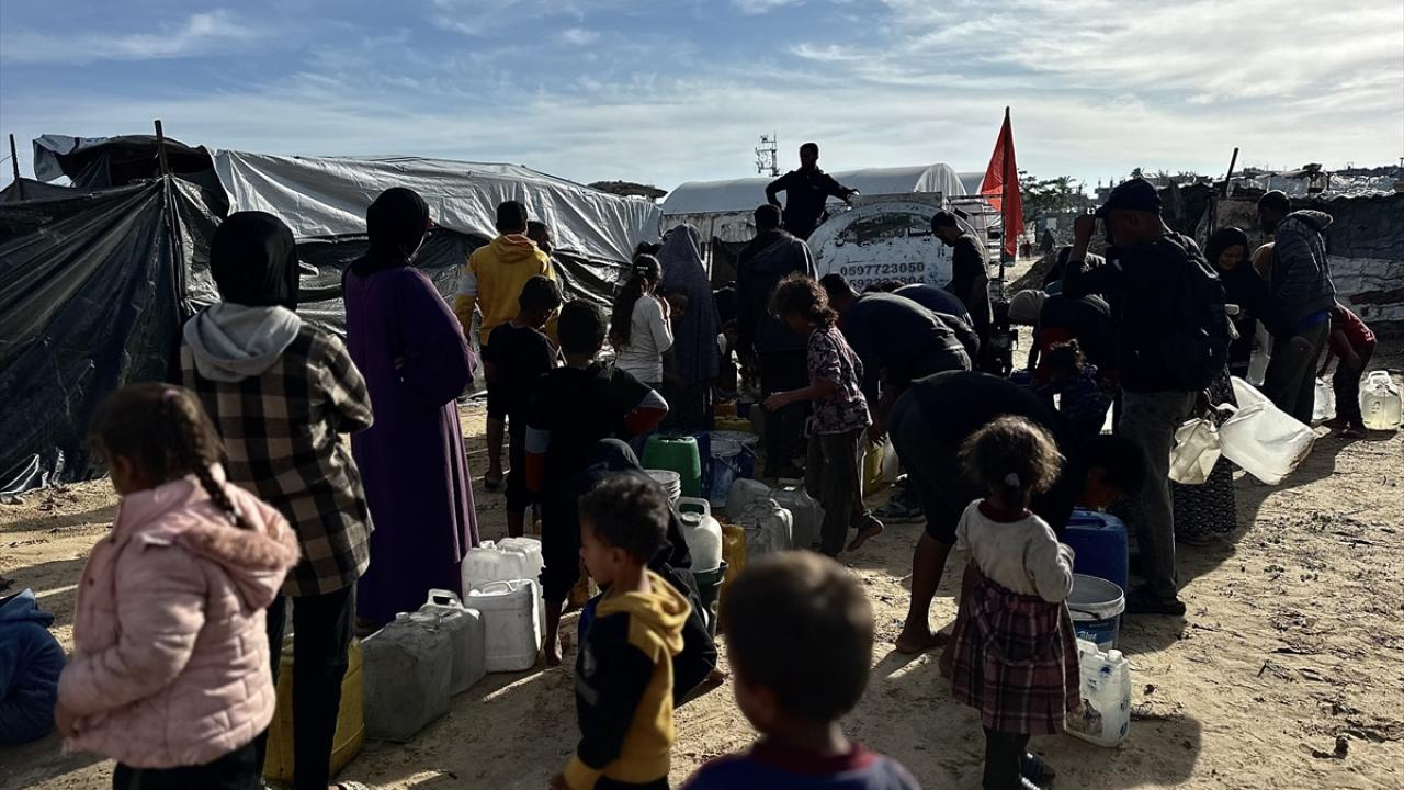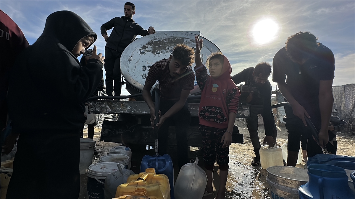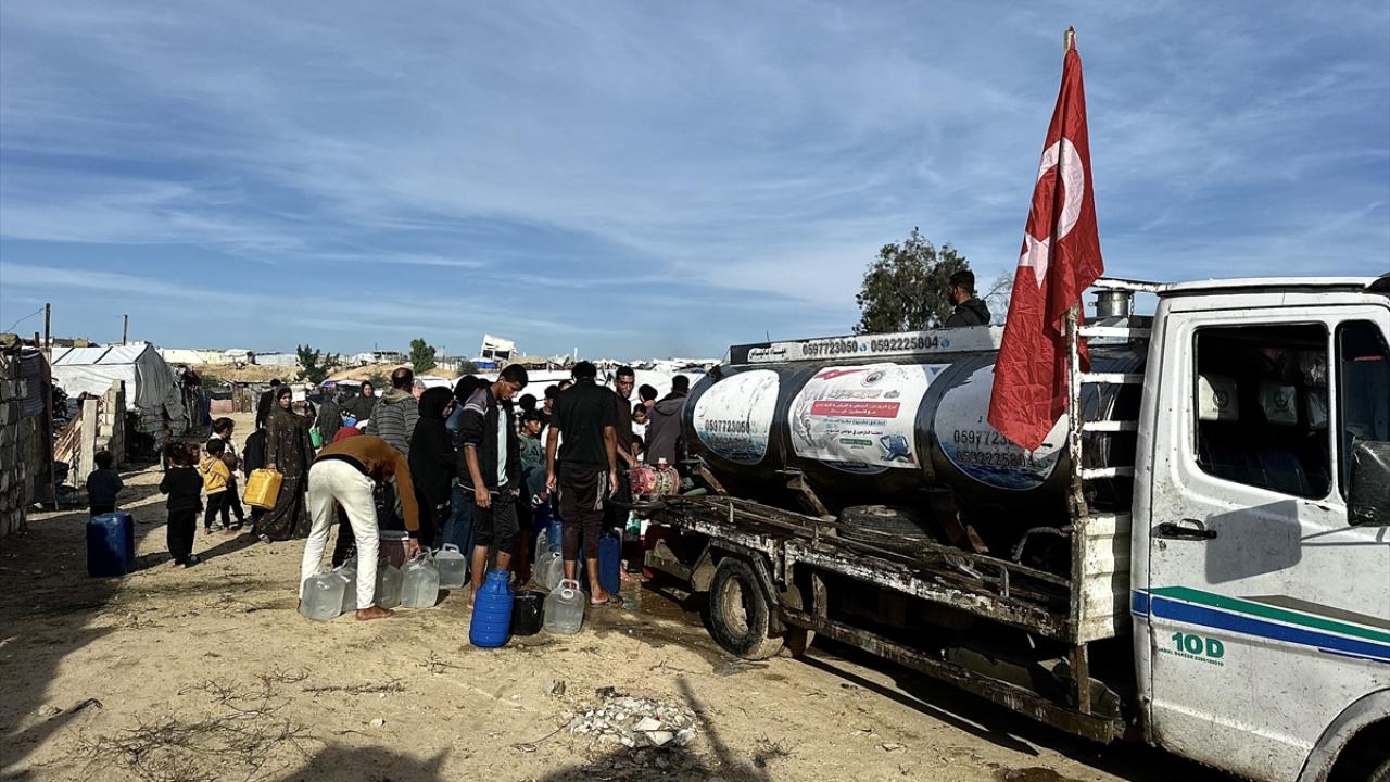 İsrail saldırıları sonucu altyapının ağır hasar gördüğü ve su krizinin yaşandığı Gazze Şeridi’nin güneyindeki Han Yunus kentinin Nehr bölgesinde, yerinden edilmiş sivillere Türk yardım kuruluşu Fidar tarafından acil su dağıtımı yapıldı.