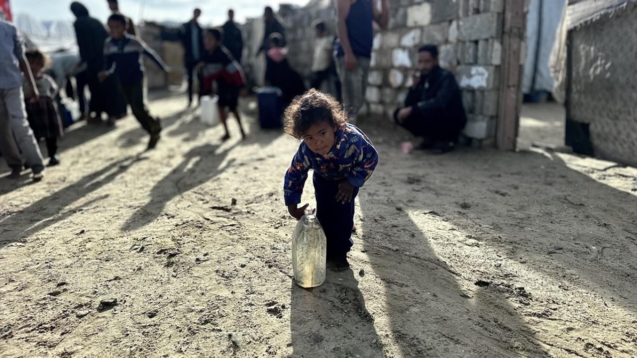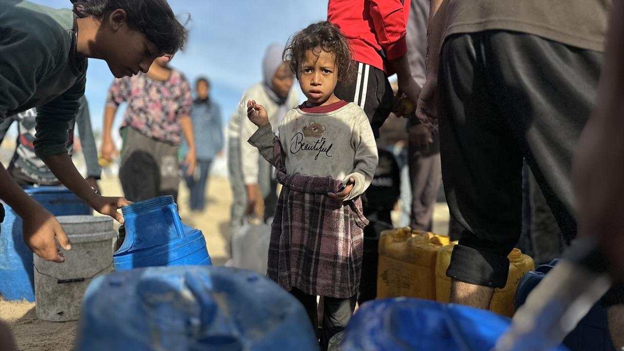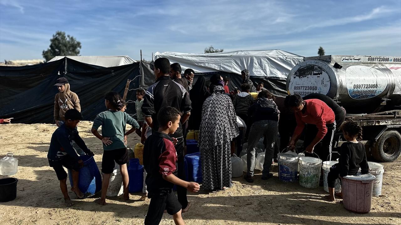 İsrail saldırıları sonucu altyapının ağır hasar gördüğü ve su krizinin yaşandığı Gazze Şeridi’nin güneyindeki Han Yunus kentinin Nehr bölgesinde, yerinden edilmiş sivillere Türk yardım kuruluşu Fidar tarafından acil su dağıtımı yapıldı.