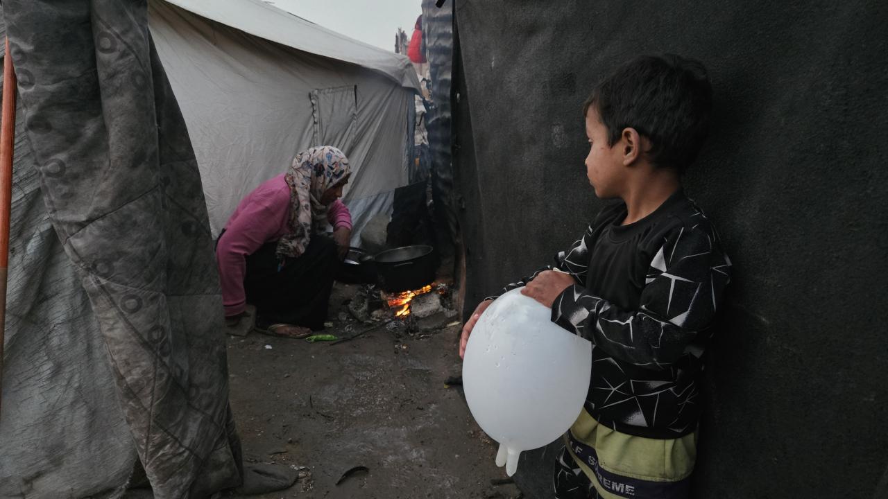 Gazze’nin güneyindeki Han Yunus kentinin batısında kurulan derme çatma çadırlarda yaşayan yerinden edilmiş Filistinlilerin zorlu yaşam mücadelesi sürüyor. Kışın ağır koşullarıyla karşı karşıya kalan Filistinliler, özellikle çocuklar olmak üzere, düzensiz alanlarda hayatta kalmaya çalışıyor.