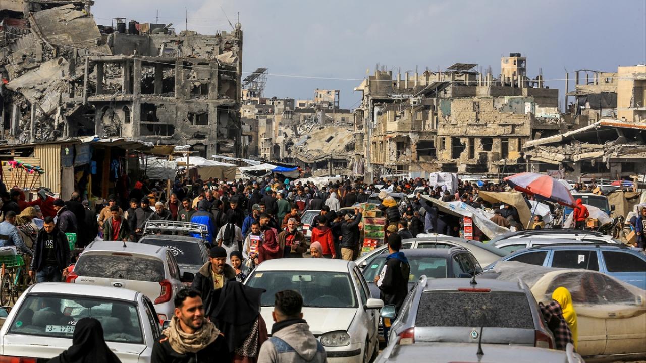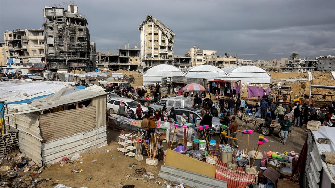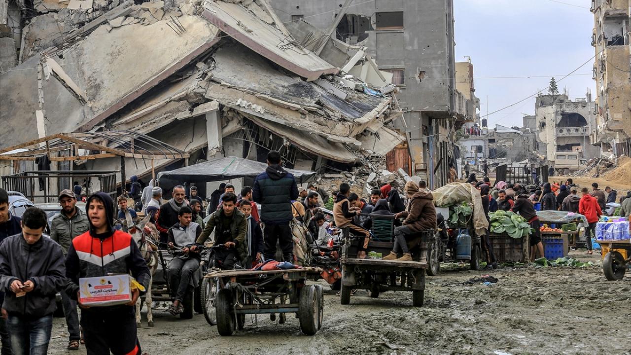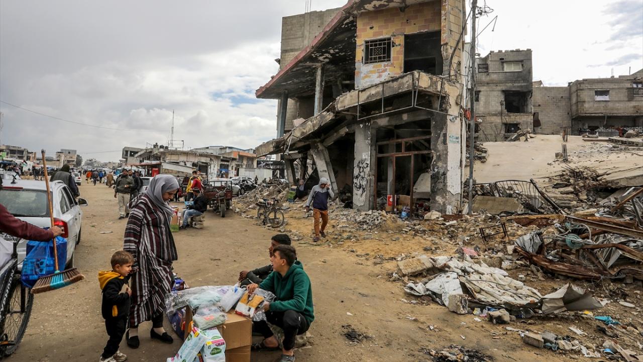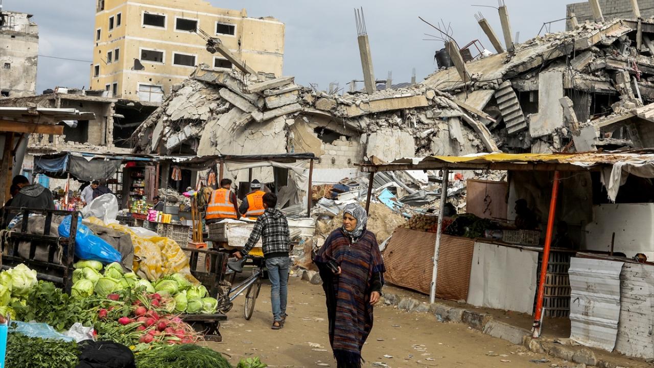 İsrail ordusunun çekilmeden önce ağır saldırılarla tahrip ettiği Gazze Şeridi’nin güneyindeki Han Yunus kentinde Filistinliler, yıkılan binaların arasında yaşamlarını sürdürmeye devam ediyor.