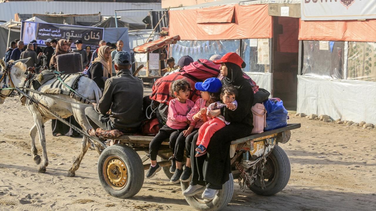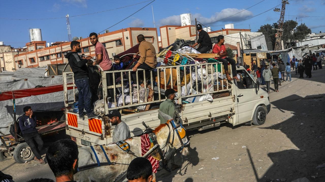 İsrail ordusunun Gazze Şeridi'nin Han Yunus kenti doğusundaki Filistinlilere yönelik tahliye çağrısının ardından bölgede bulunanların yaşadıkları ev ve çadırları terk ederek kentin batısında Mevasi’ye doğru yola çıktı.