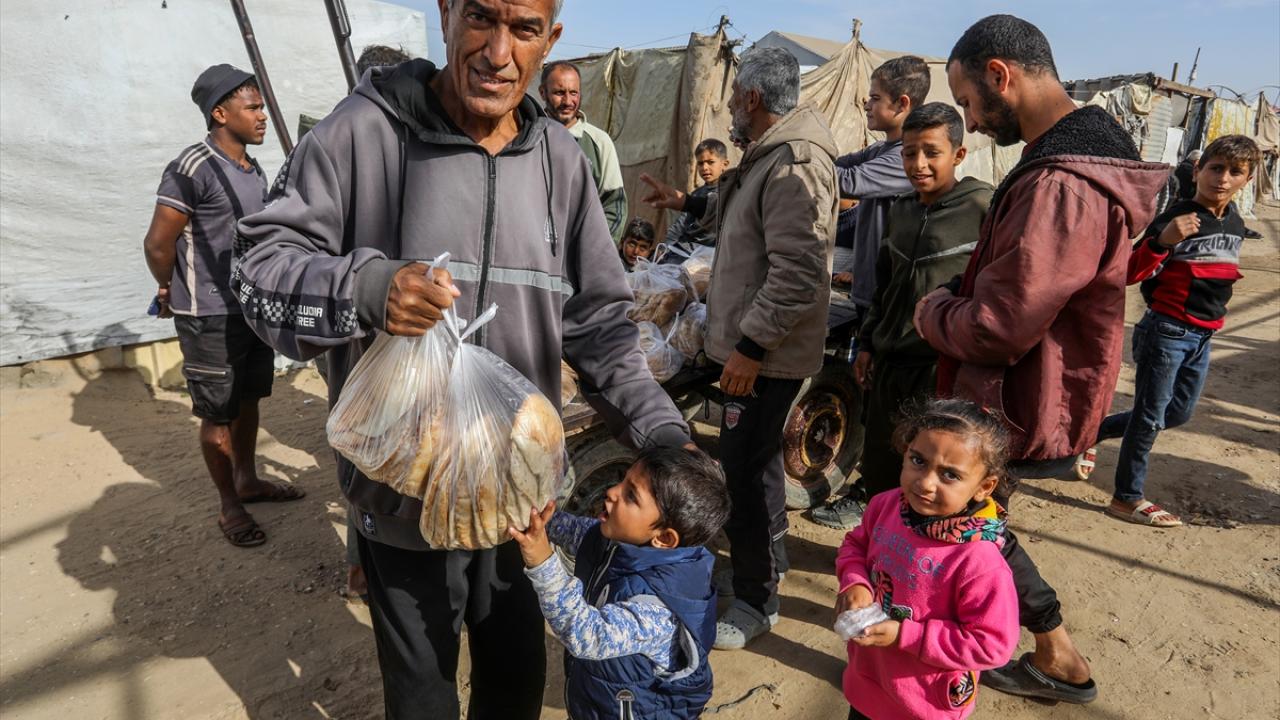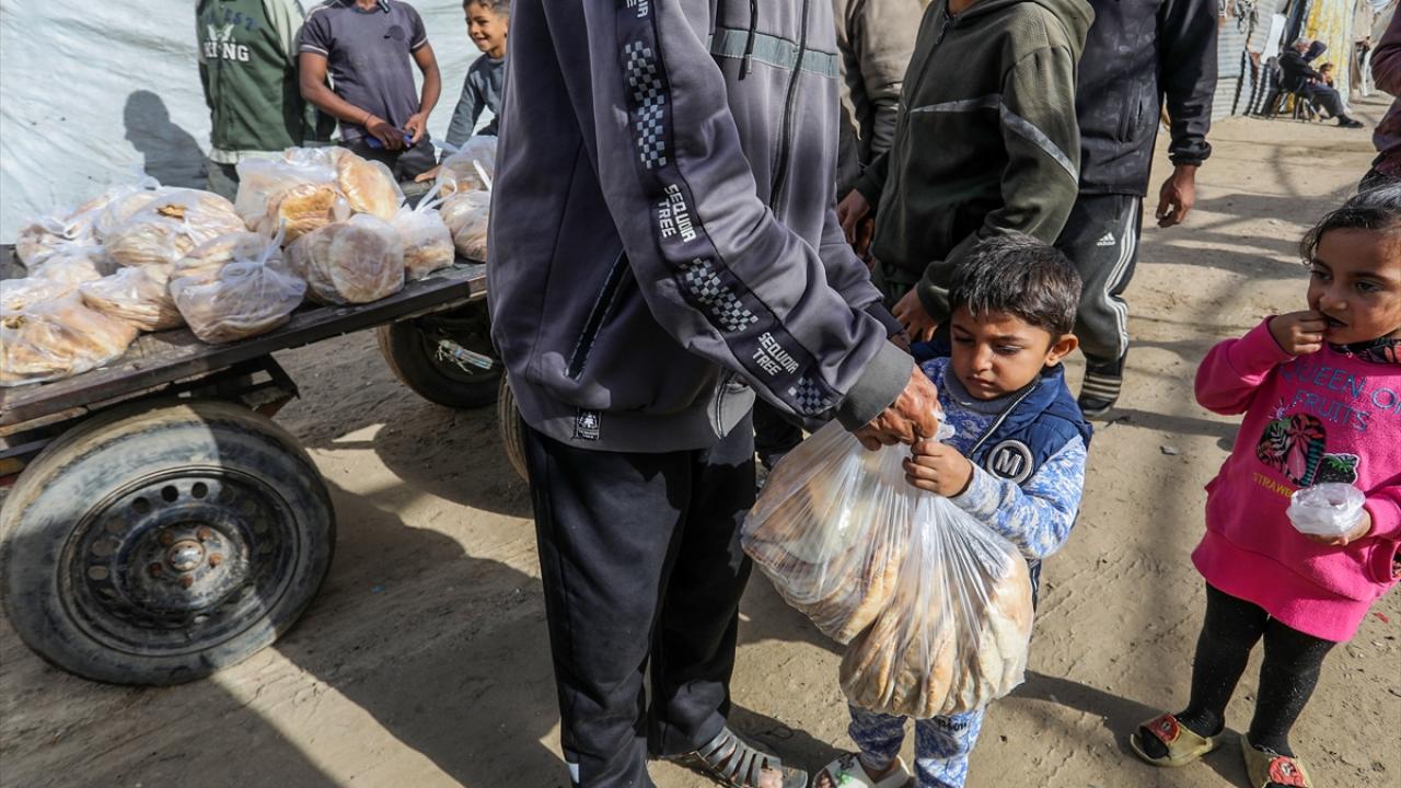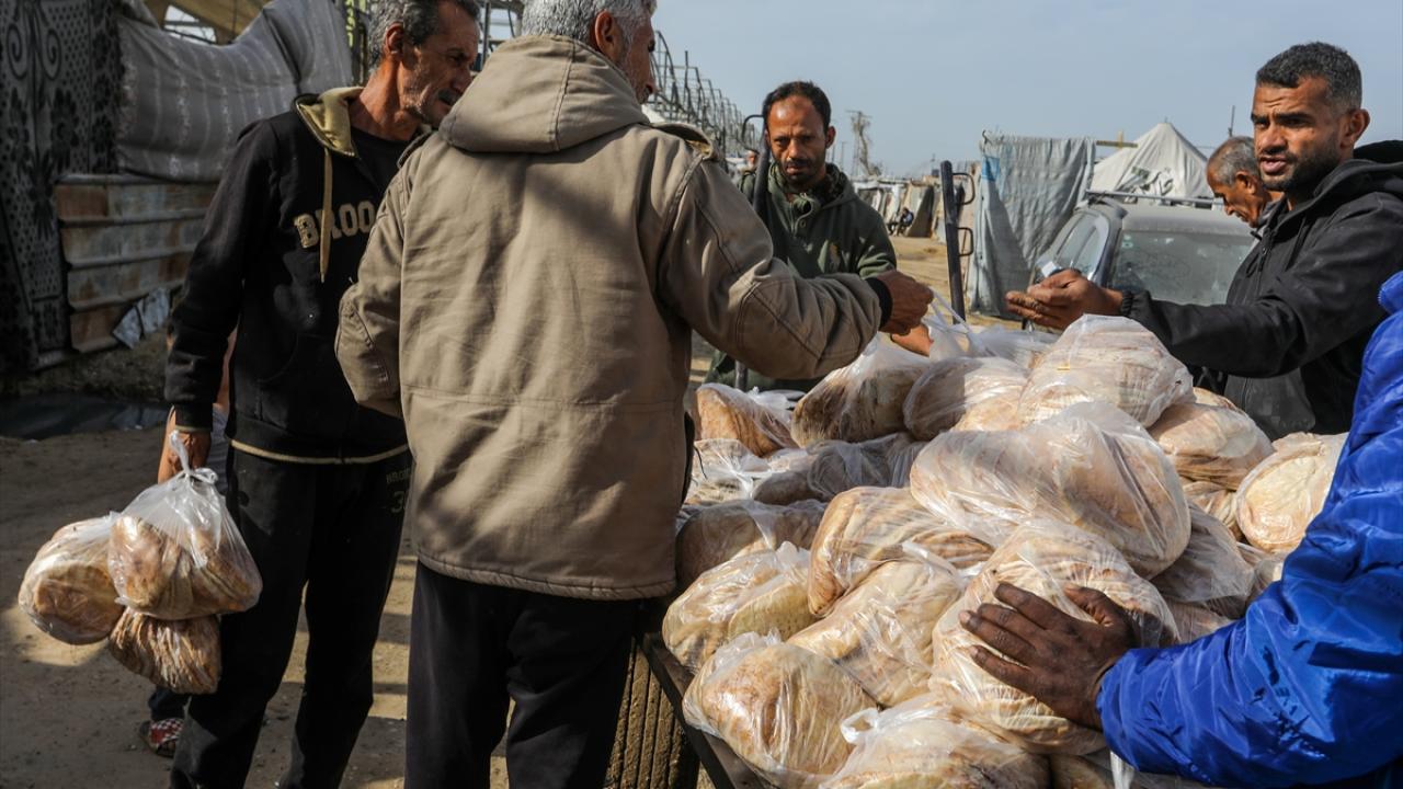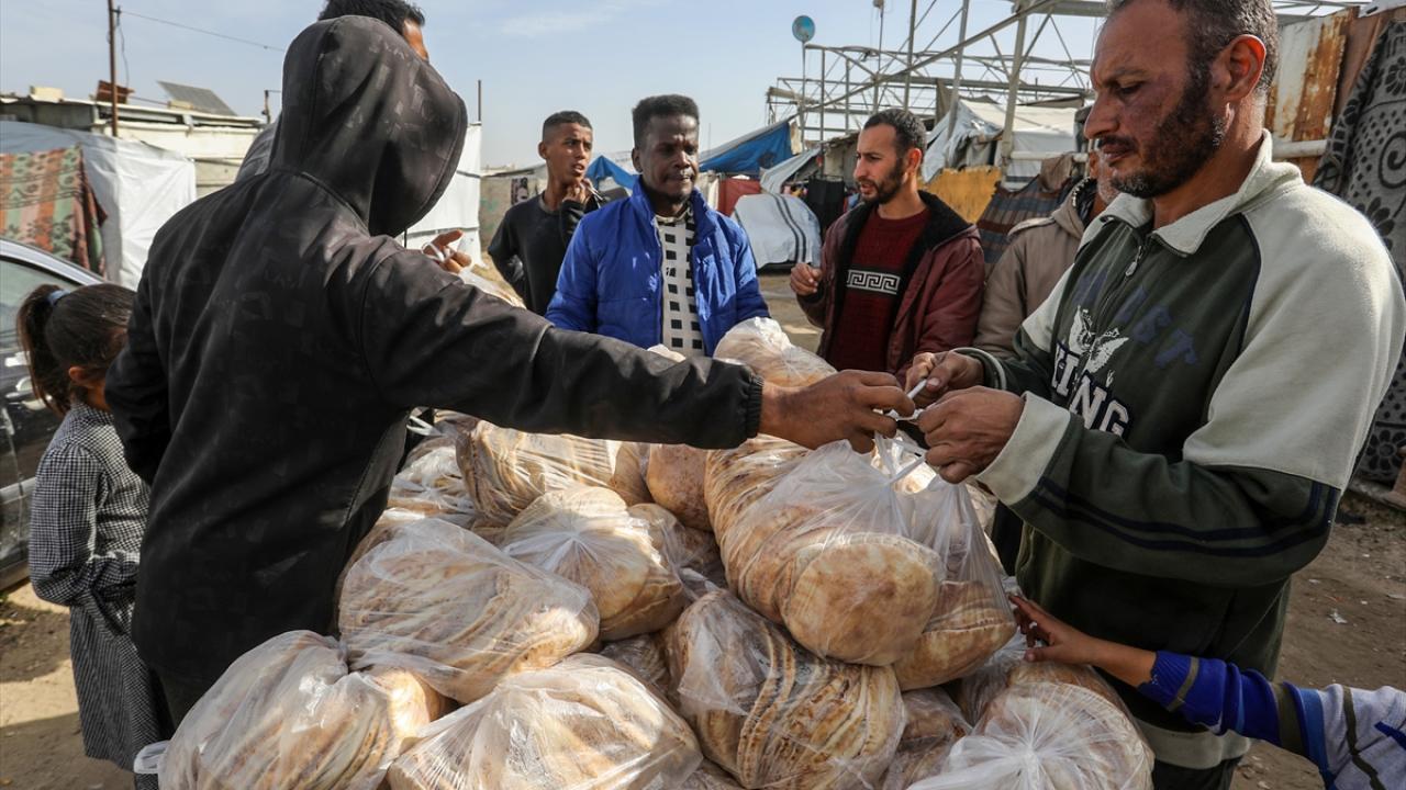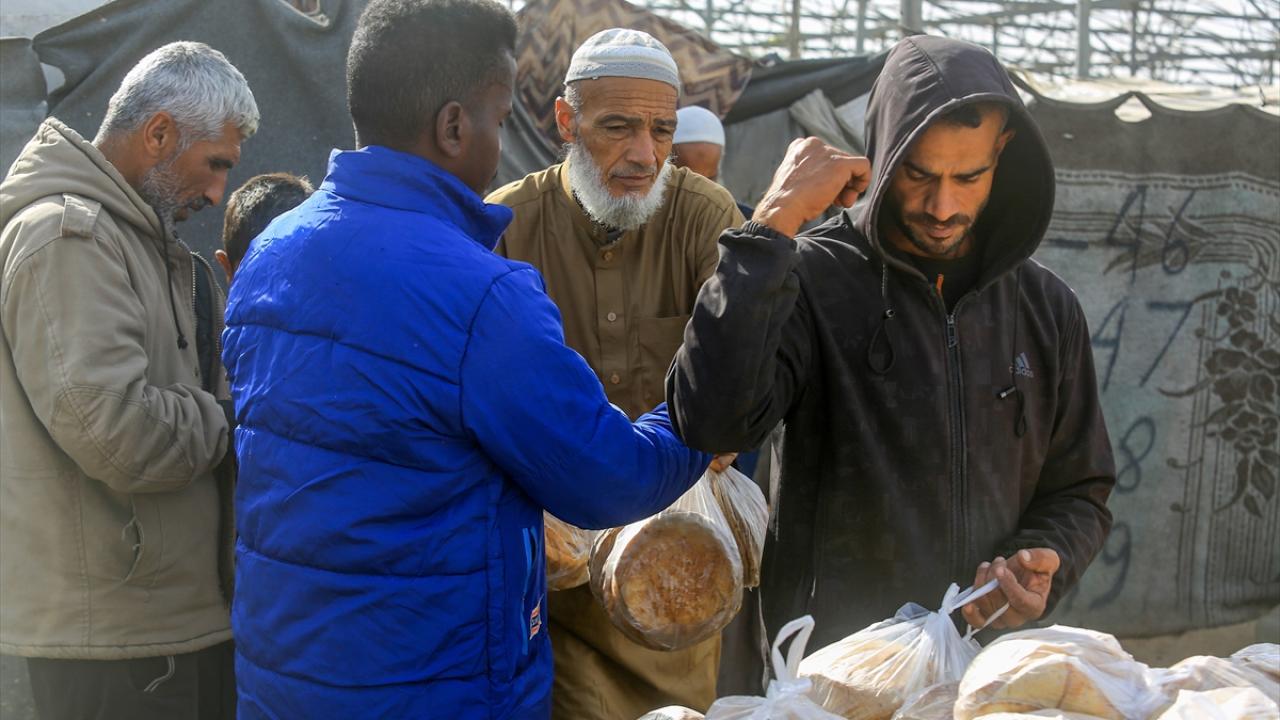 Han Yunus'taki Filistinlilere ekmek dağıtımı yapıldı