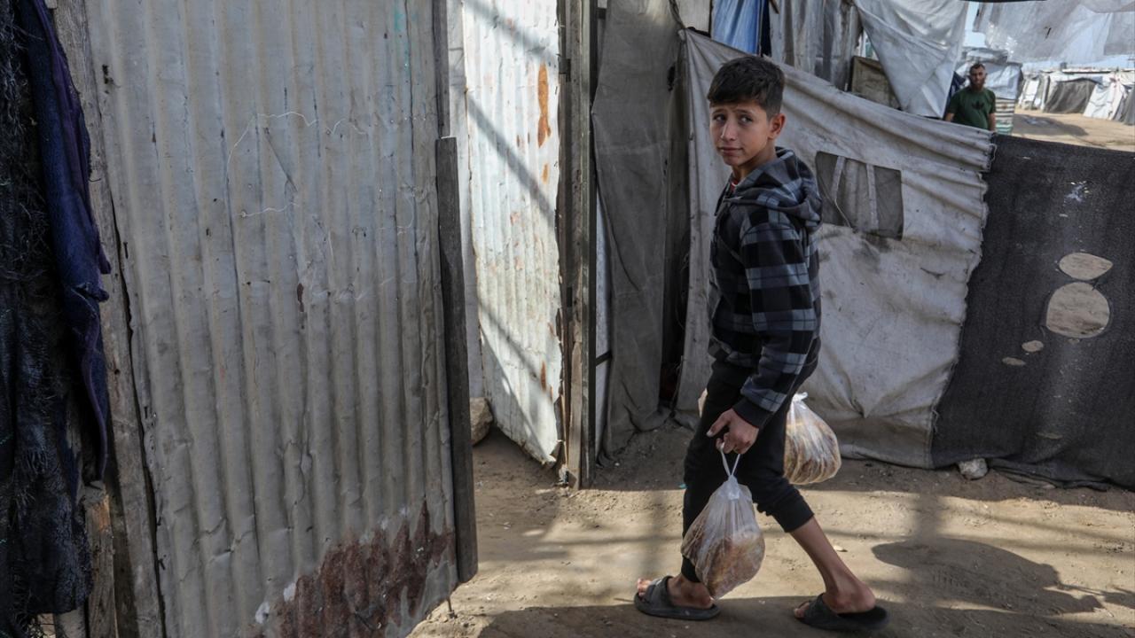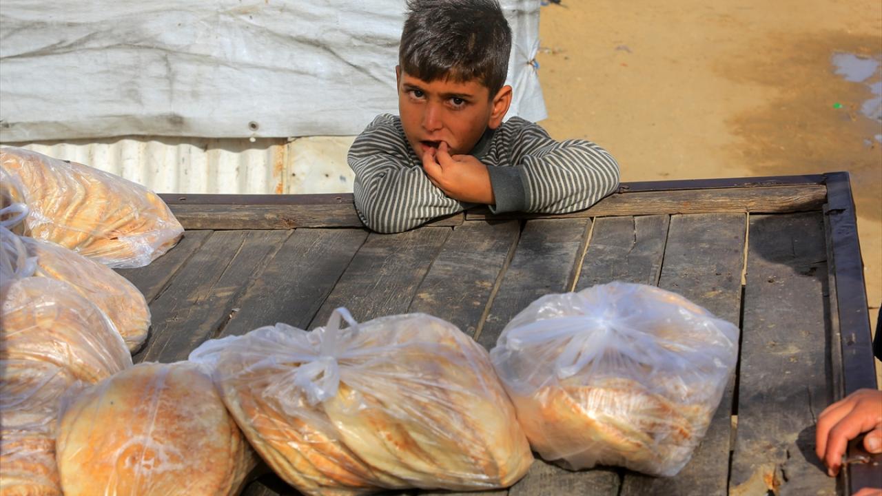 Han Yunus`un el-Mevasi bölgesindeki bir hayır kurumu, yerinden edilen Filistinlilere ekmek dağıttı.