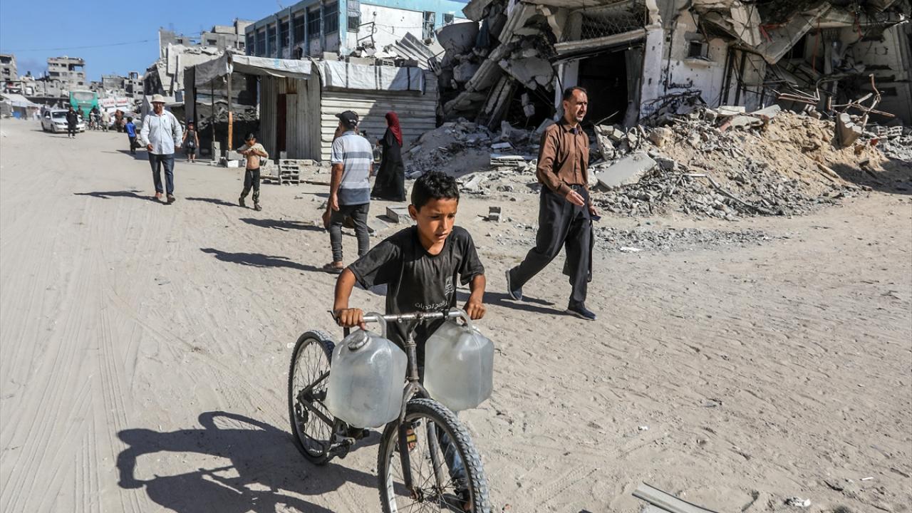 İsrail’in Gazze Şeridi’ne yönelik devam eden saldırıları nedeniyle Han Yunus kentinde evlerinden ve çadırlarından edilen Filistinli siviller, zor koşullar altında yaşam mücadelesi veriyor.