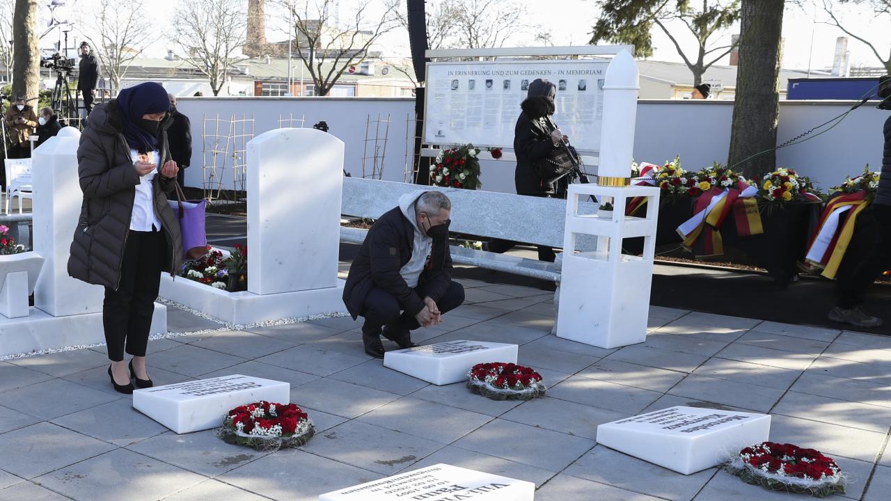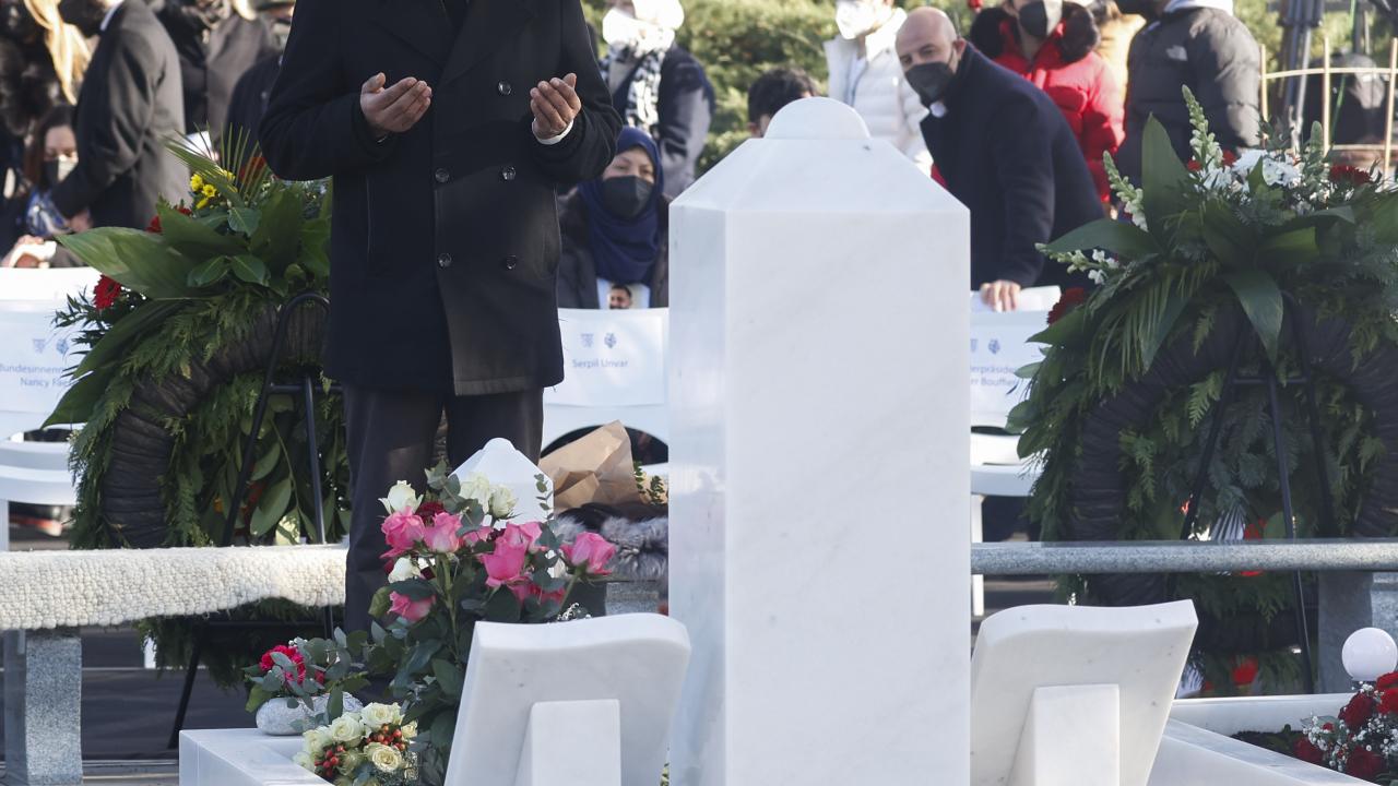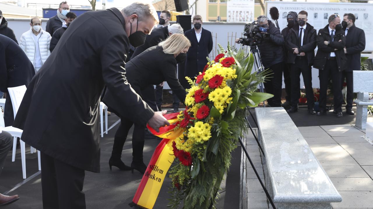 Almanya'nın Hanau kentinde 19 Şubat 2020'de gerçekleştirilen ve aralarında Türklerin de bulunduğu 9 kişinin yaşamını yitirdiği ırkçı terör saldırısının ikinci yılında şehir mezarlığında anma töreni düzenlendi.