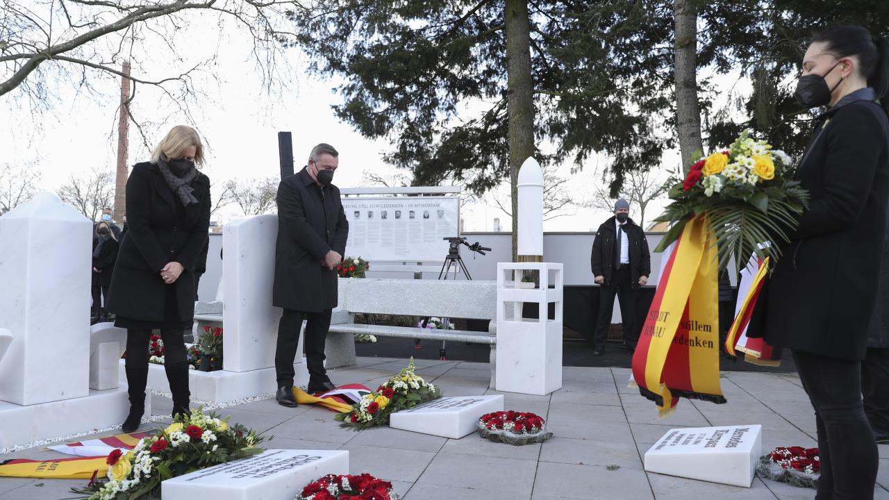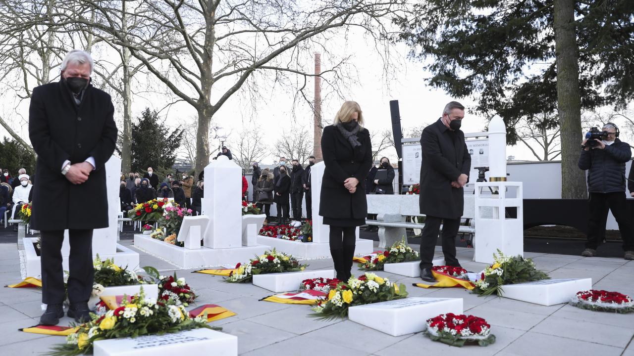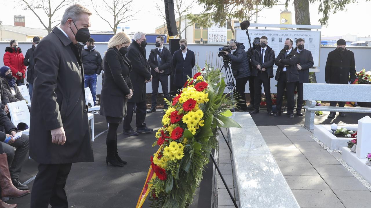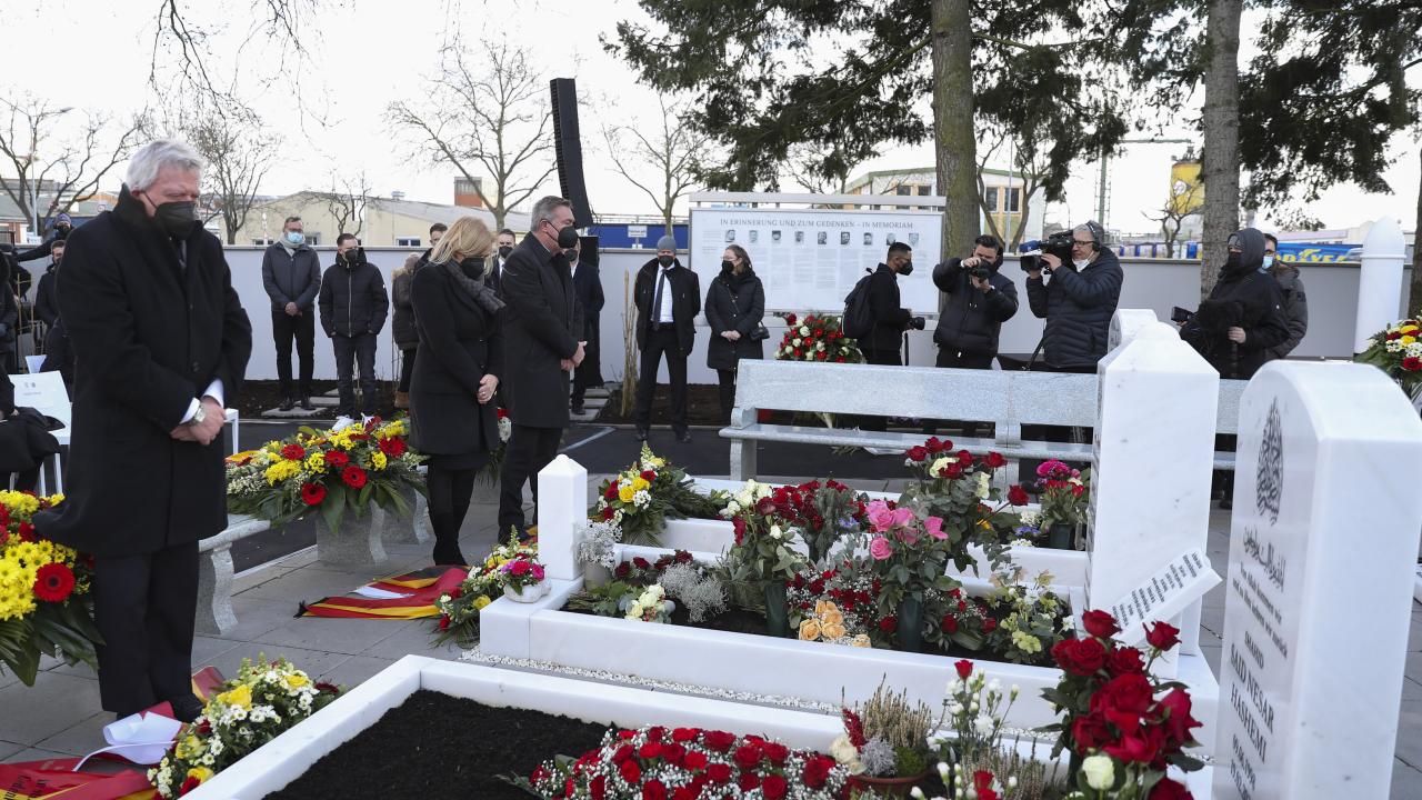 Almanya'nın Hanau kentinde 19 Şubat 2020'de gerçekleştirilen ve aralarında Türklerin de bulunduğu 9 kişinin yaşamını yitirdiği ırkçı terör saldırısının ikinci yılında şehir mezarlığında anma töreni düzenlendi.