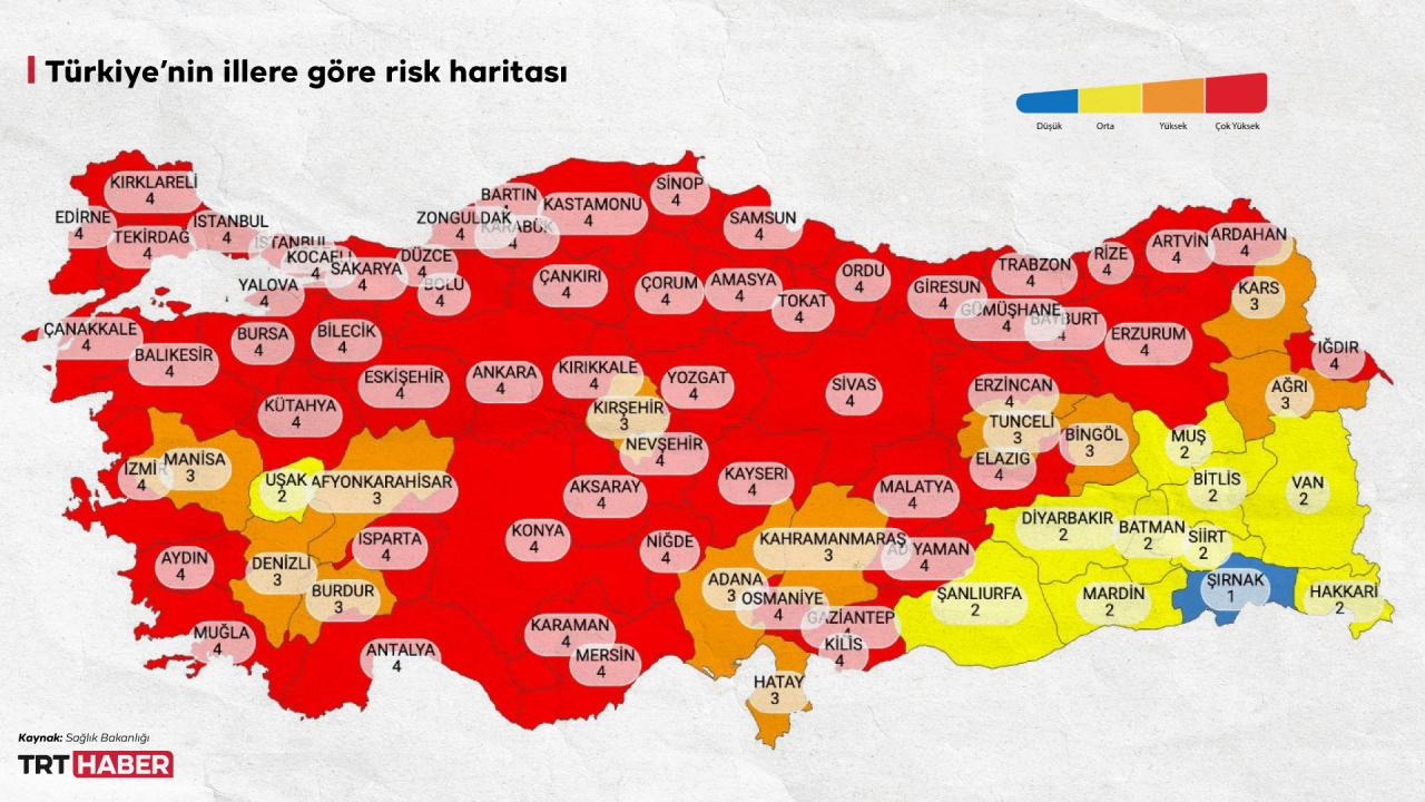 İzmir, yüksek riskli (turuncu) kategorideydi.