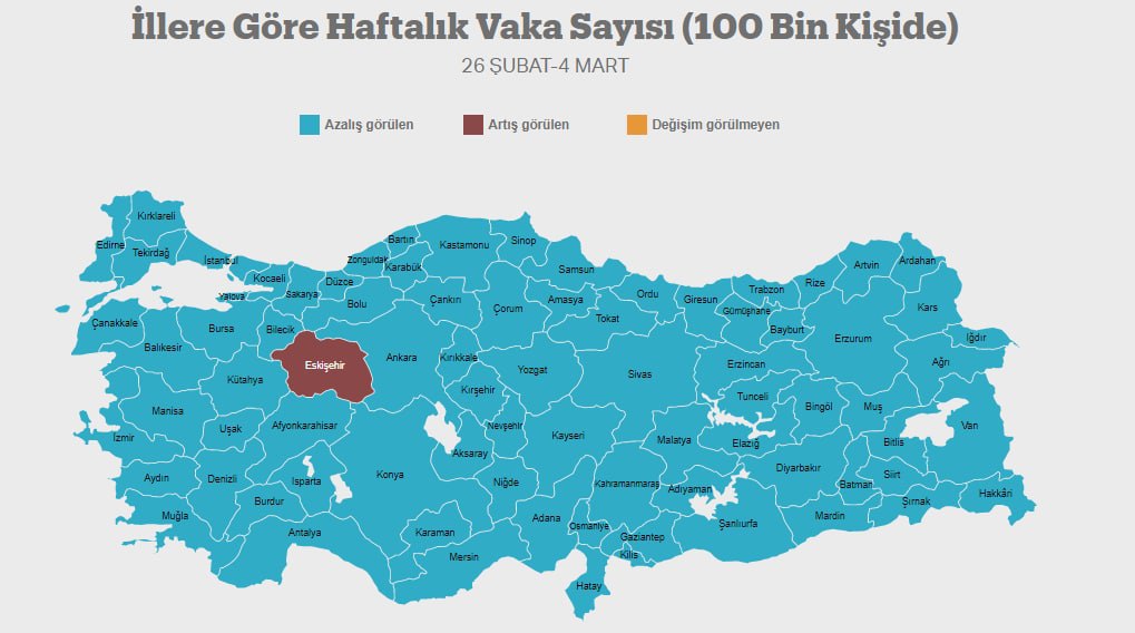 Harita açıklandı: Sadece bir ilde vakalar arttı