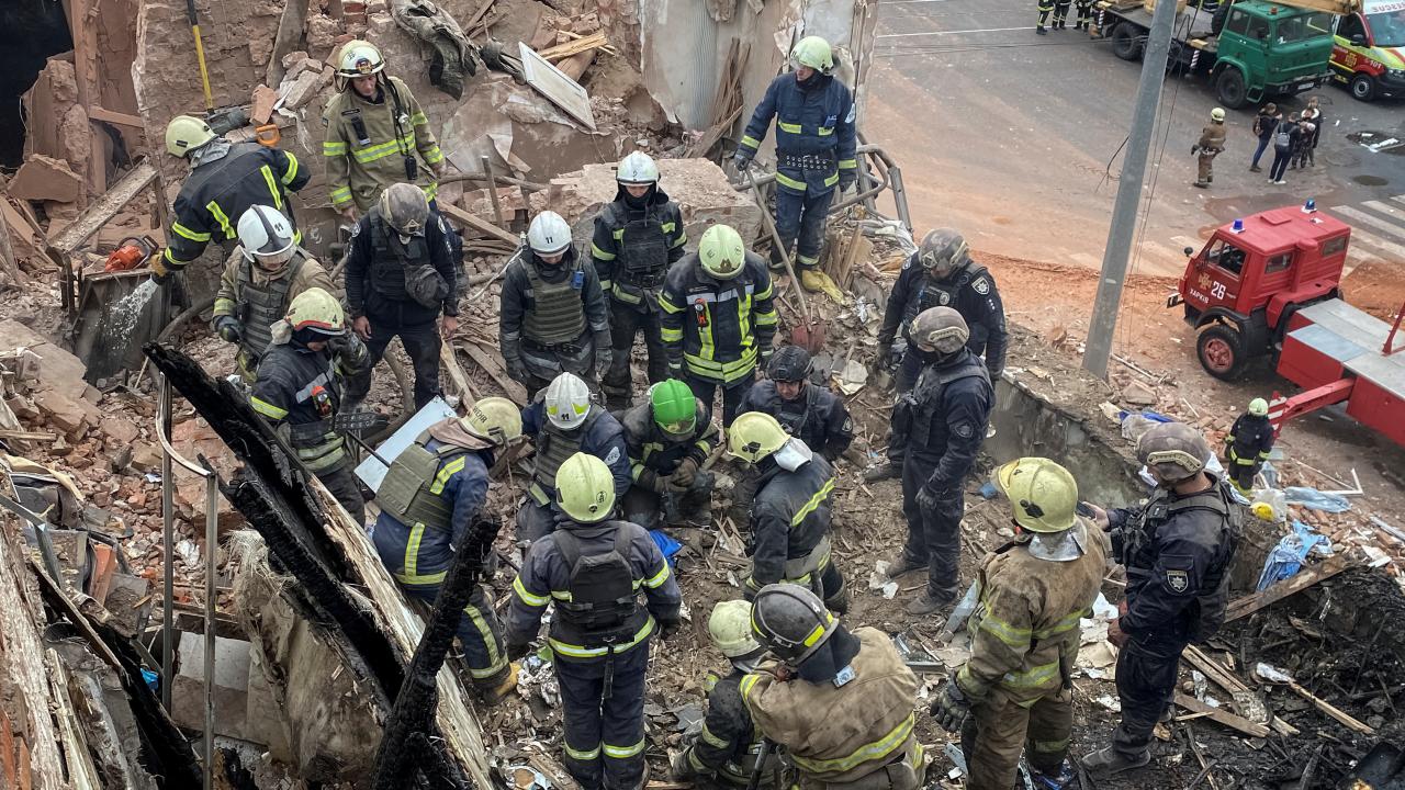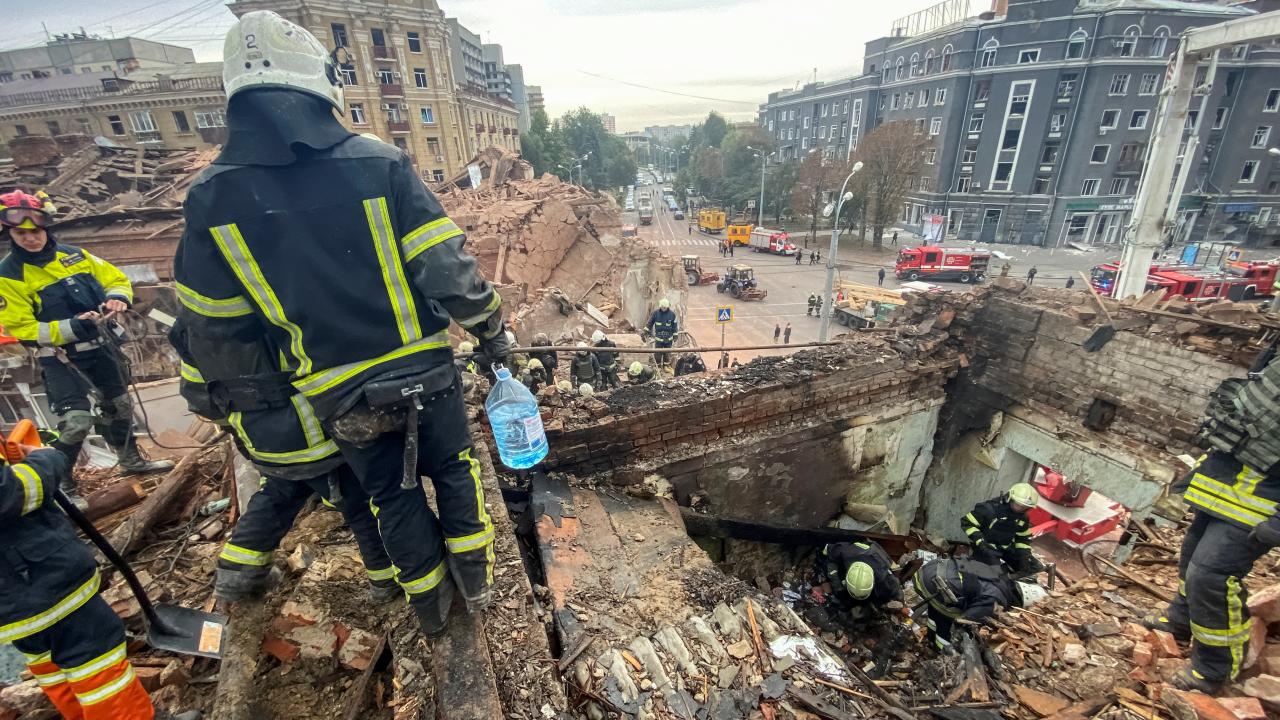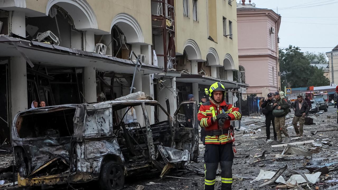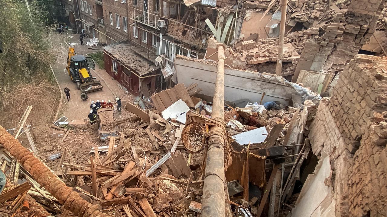 Bir füzenin ana yola düşmesi sonucu çevredeki evlerin camlarının kırıldığını anlatan Sinegubov, ikinci füzenin de 3 katlı eve isabet ettiği bilgisini verdi.