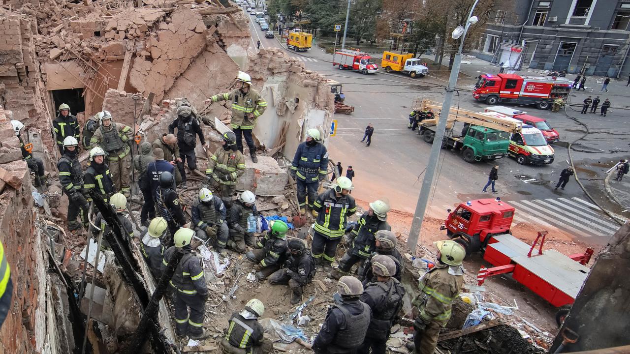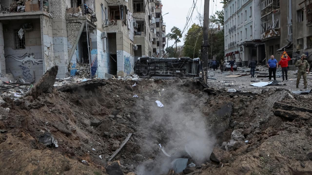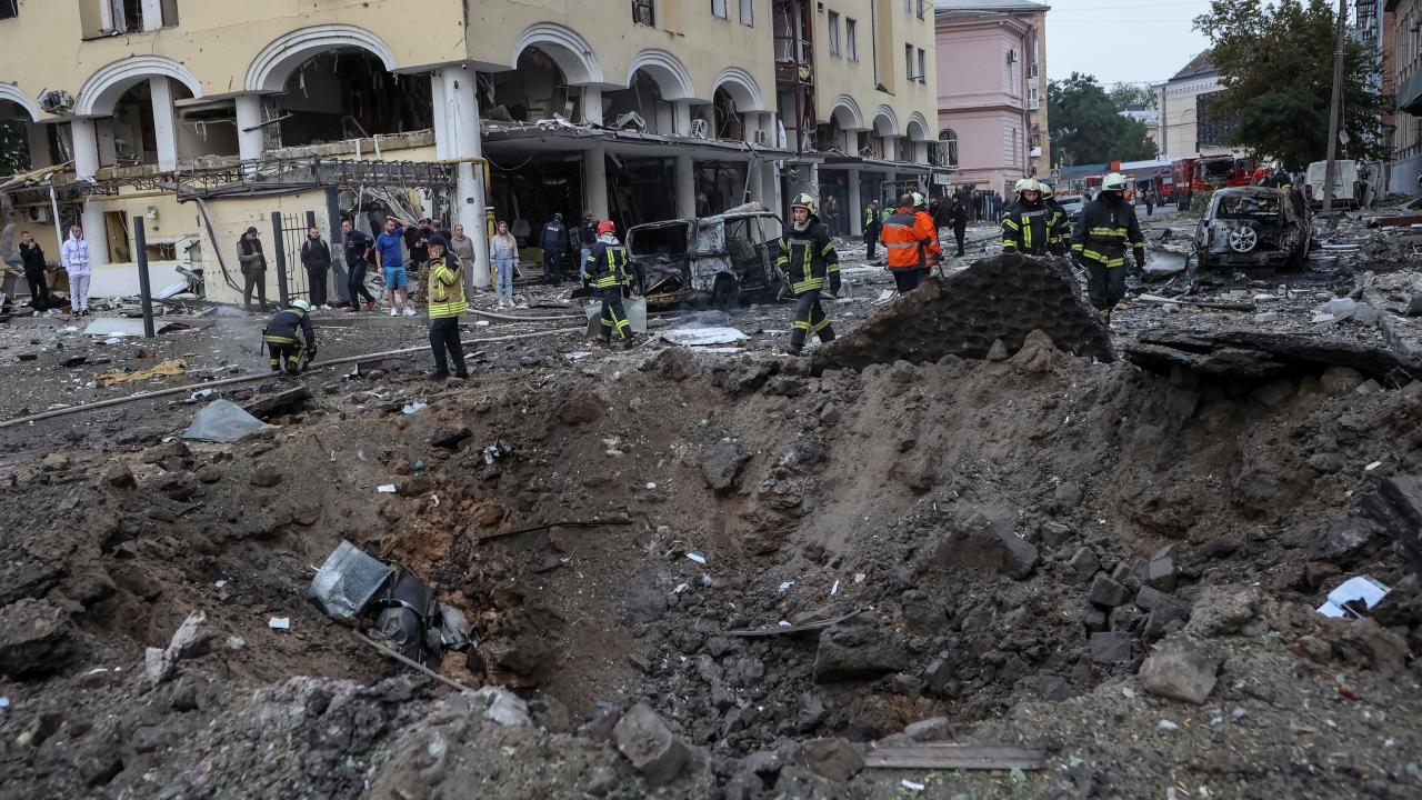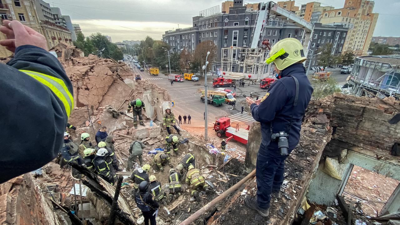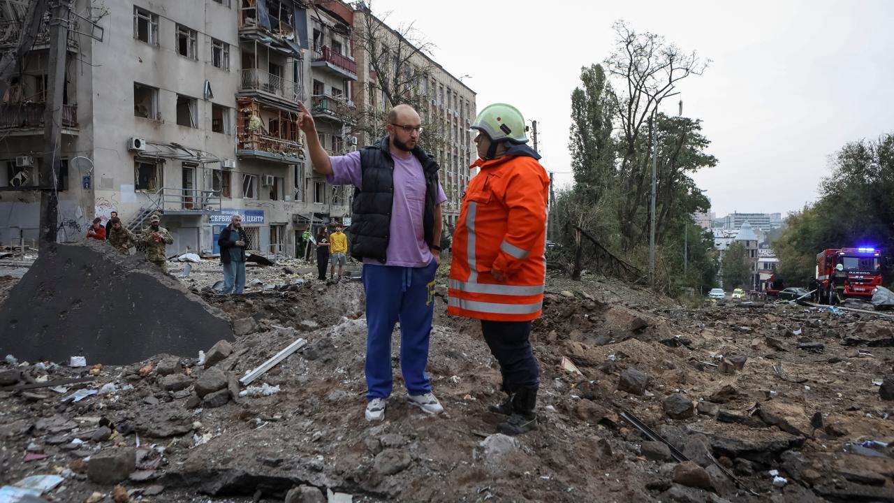 Bir füzenin ana yola düşmesi sonucu çevredeki evlerin camlarının kırıldığını anlatan Sinegubov, ikinci füzenin de 3 katlı eve isabet ettiği bilgisini verdi.