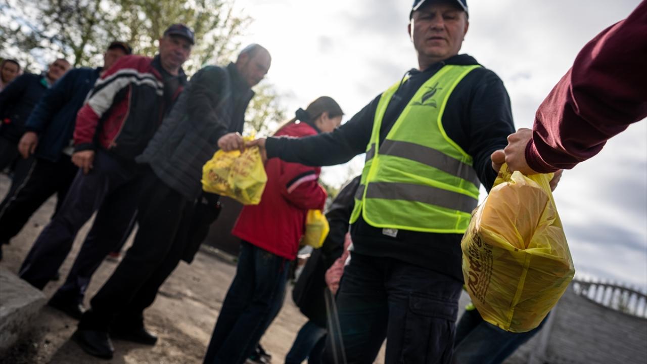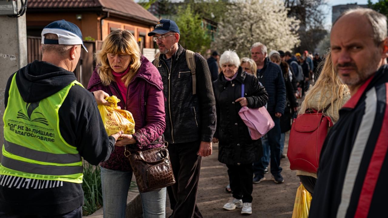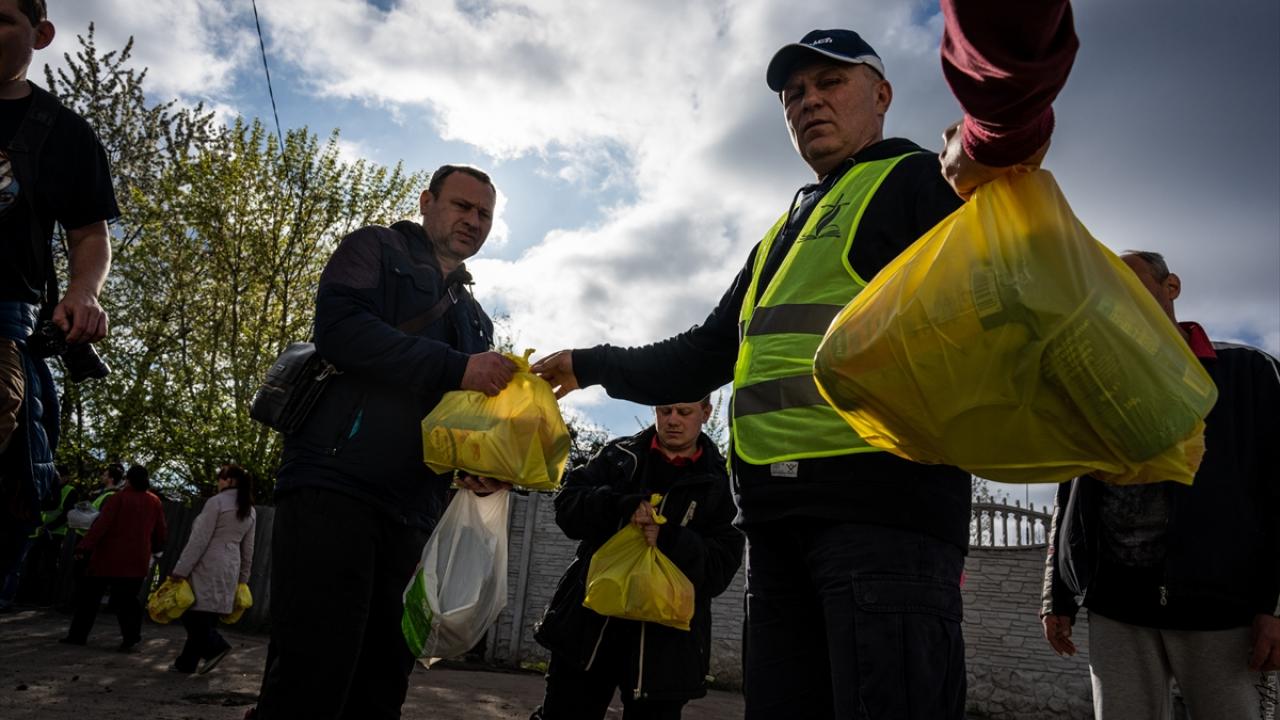 Rus güçlerinin Ukrayna`nın Harkiv kentine yönelik saldırıları devam ederken Ukraynalı gönüllülerin oluşturduğu topluluk, bölgedeki bir kilisede sivillere yiyecek dağıttı.