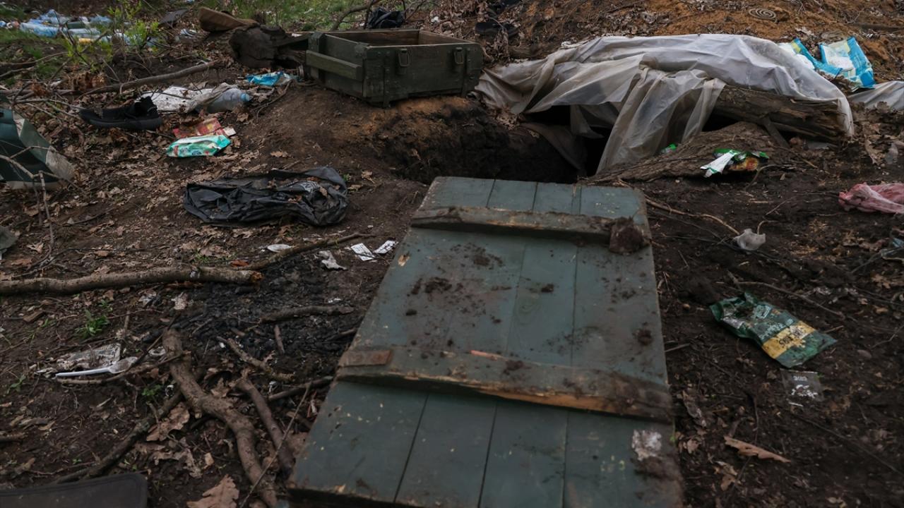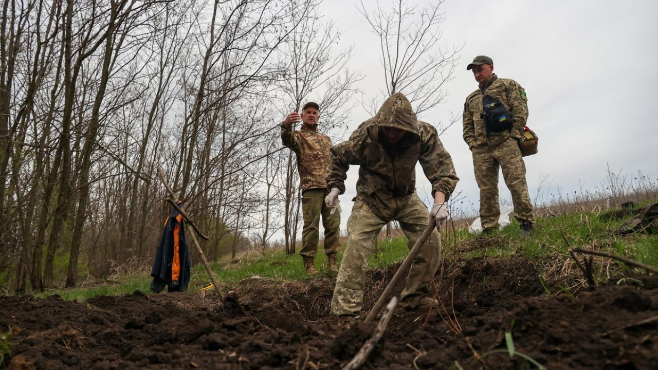 Rusya ile Ukrayna arasındaki savaş devam ederken, Ukrayna'nın Harkiv bölgesinde Rusya Federasyonu sınırına yakın ve önceden askeri mevzi olarak kullanılan alanlarda Ukrayna askerleri incelemelerde bulundu.