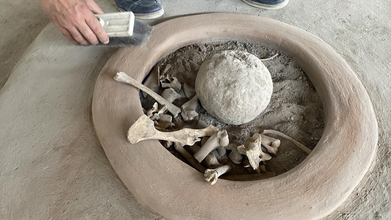 Aytaç, mutfakta yer alan tandırların 7`sinin toprak kalıntılarını aldıklarında birinin içinde mancınık güllesini bulduklarını söyledi.