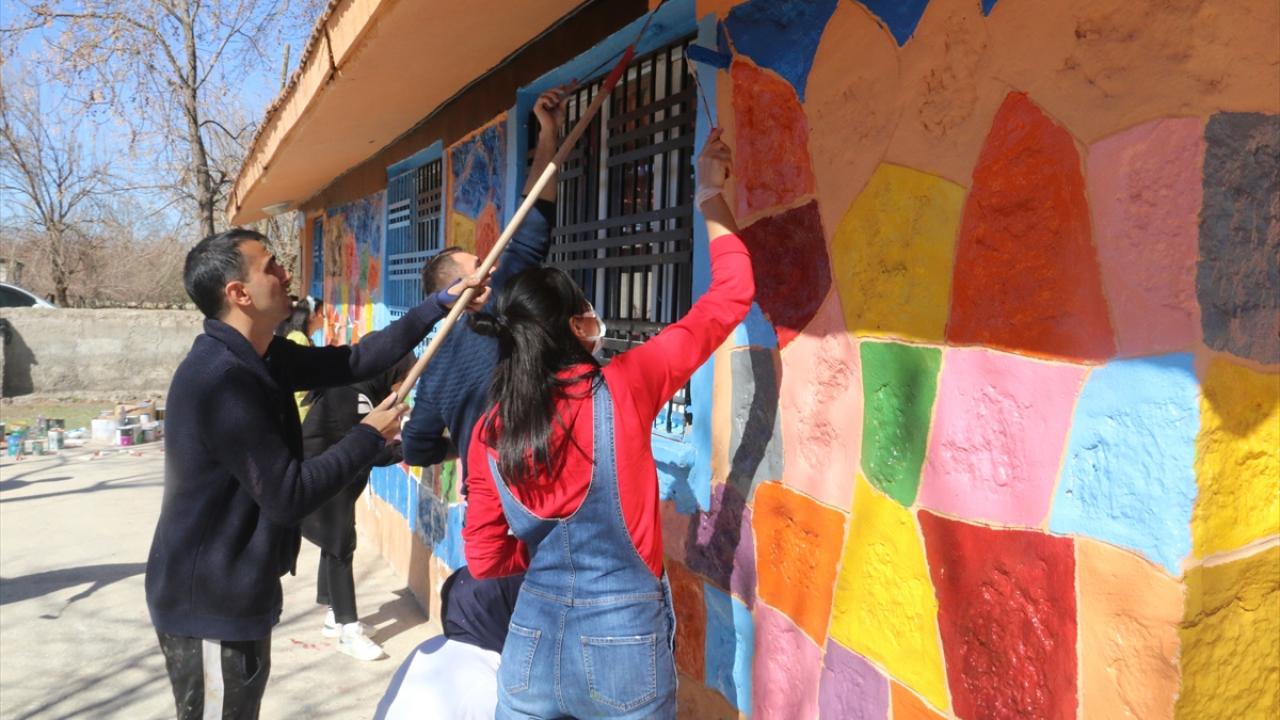 Yeni tip koronavirüs tedbirleri kapsamında 2020-2021 eğitim öğretim yılında derslerin çevrim içi yapılmaya başlamasının ardından durumu fırsata çeviren öğretmenler, okullarda boyama çalışması başlattı.