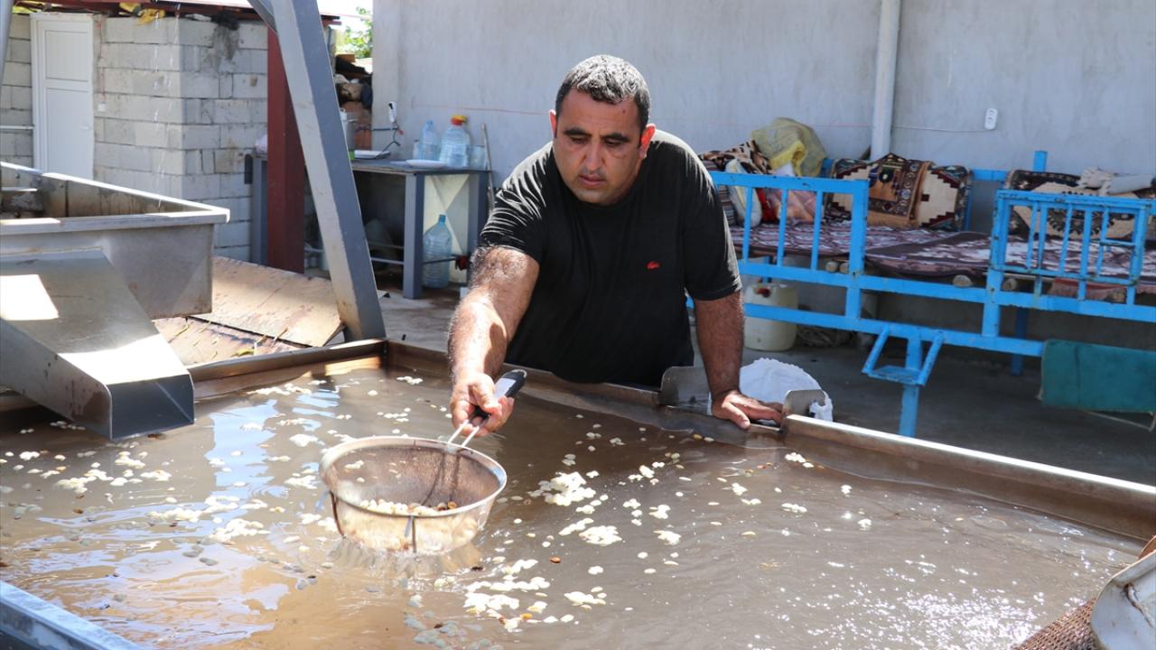 Mevsimlik tarım işçilerinin alın teri ile topladığı fıstık, ayıklama işleminin ardından su dolu kazanlarda boş ve dolu şekilde ayrıştırıldıktan sonra dolu olanlar güneşte yaklaşık 5 gün bekletilip, fıstık işleme tesislerine gönderiliyor.