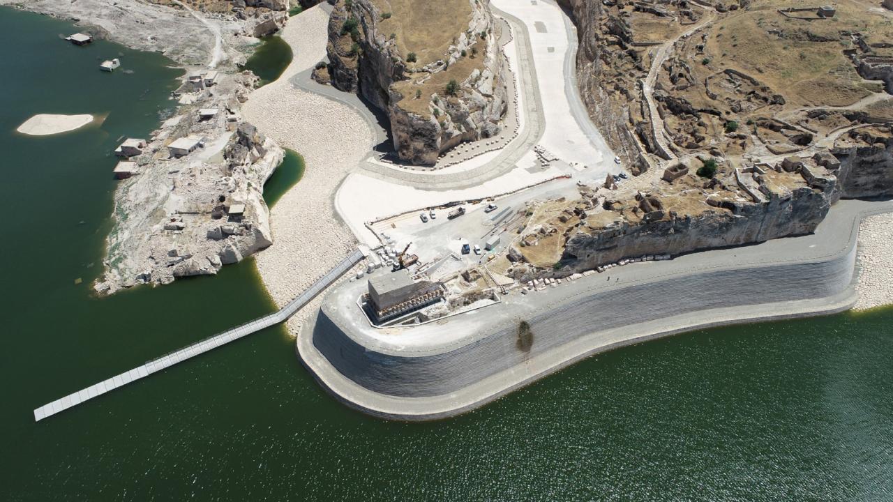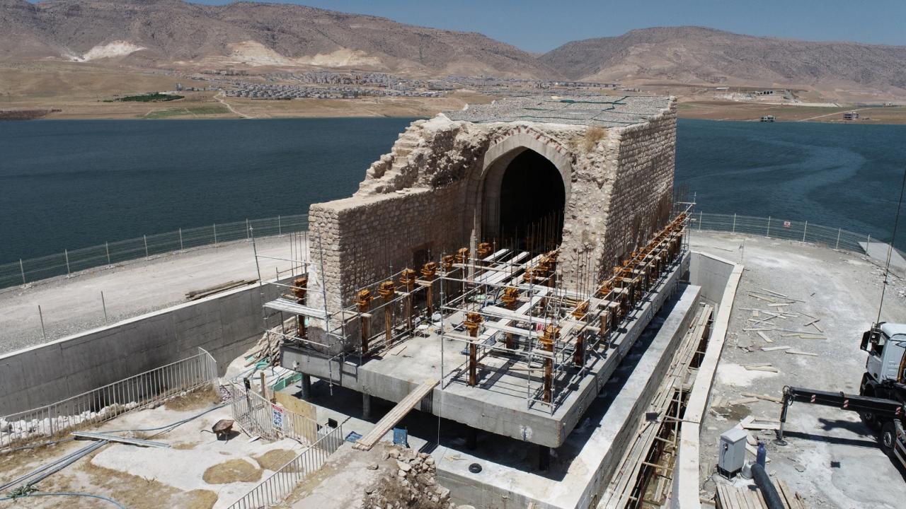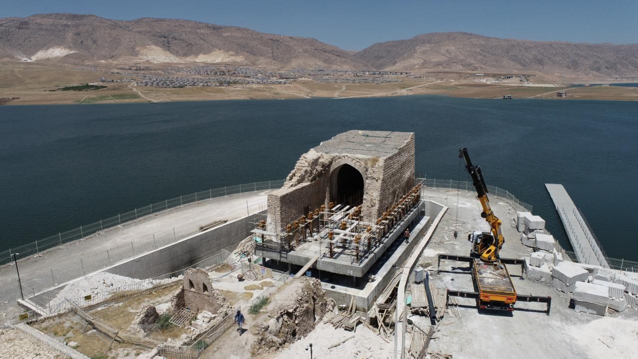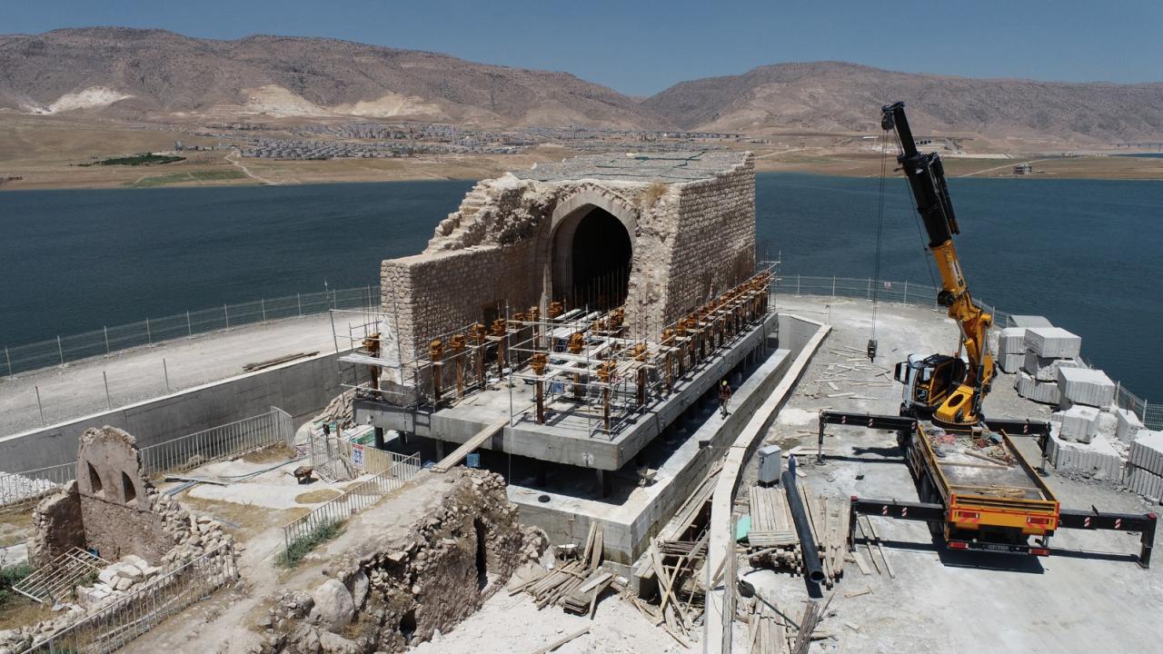Hasankeyf`te inşa edilen Veysel Eroğlu Barajı nedeniyle tarihi eserler, Kültür ve Turizm Bakanlığı ile Devlet Su İşleri Genel Müdürlüğü`nce yürütülen çalışmalarla taşları tek tek sökülerek, yeni yerleşim birimine taşınmıştı.