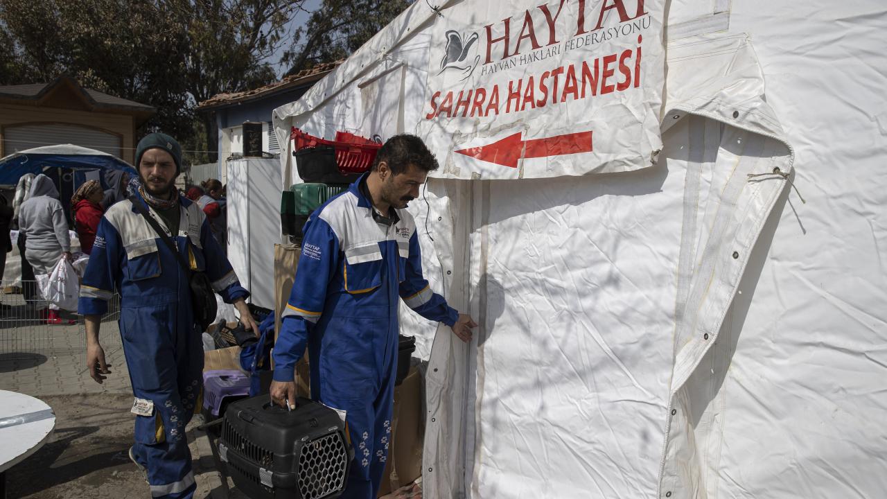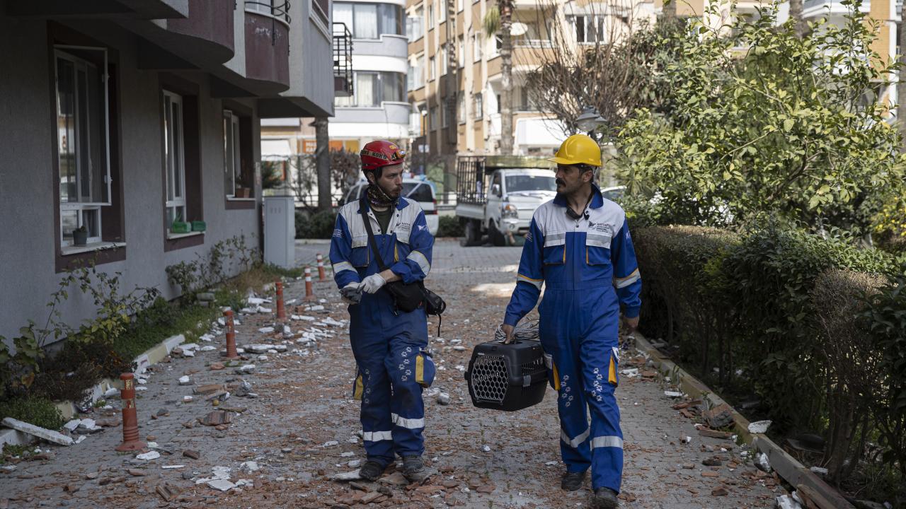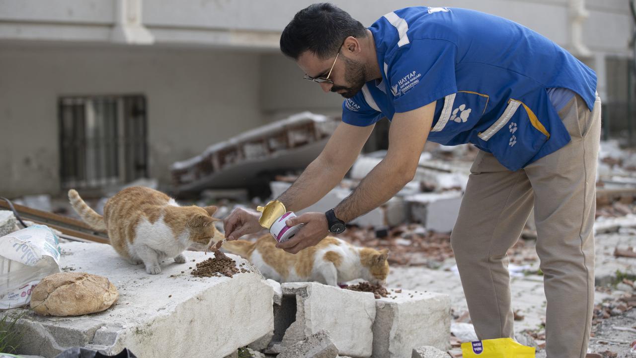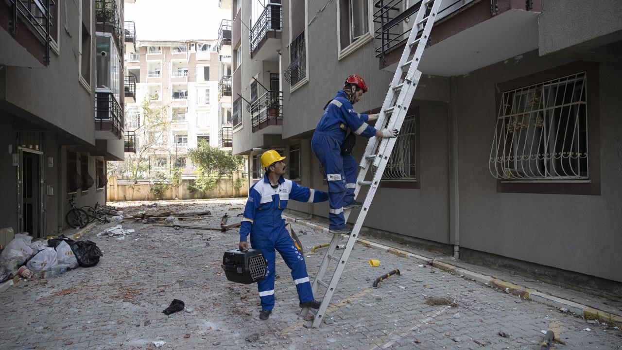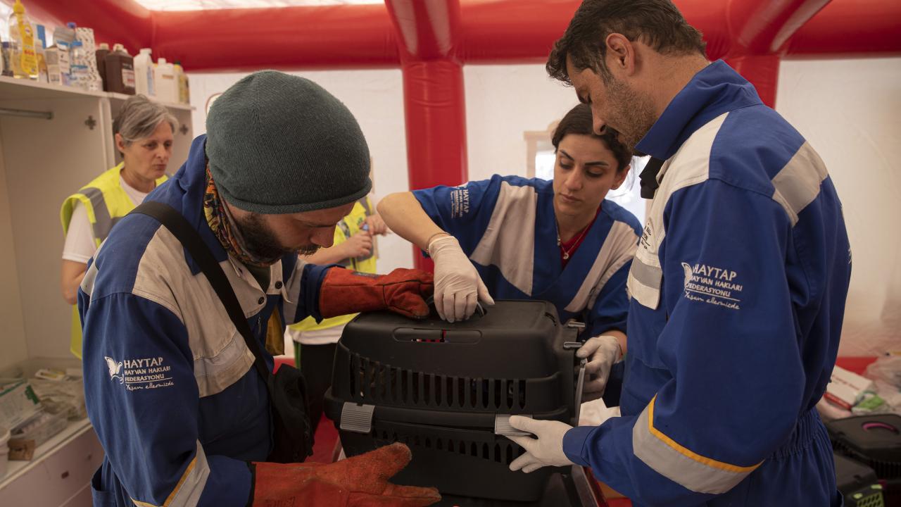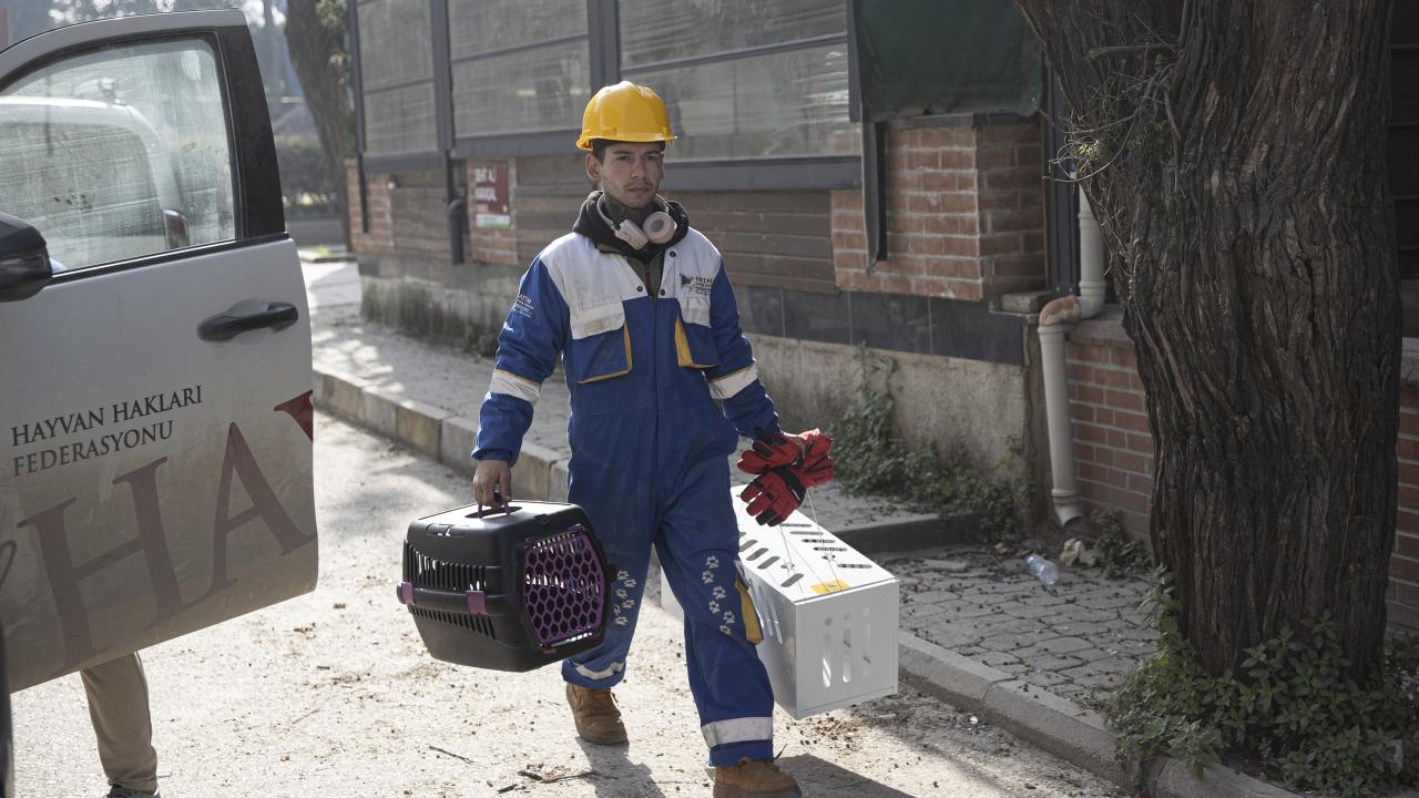 Hayvan Hakları Federasyonu (HAYTAP) gönüllüleri, depremlerden etkilenen bölgelerde hasarlı binalarda mahsur kalan hayvanları kurtarıp sahiplerine teslim ediyor.