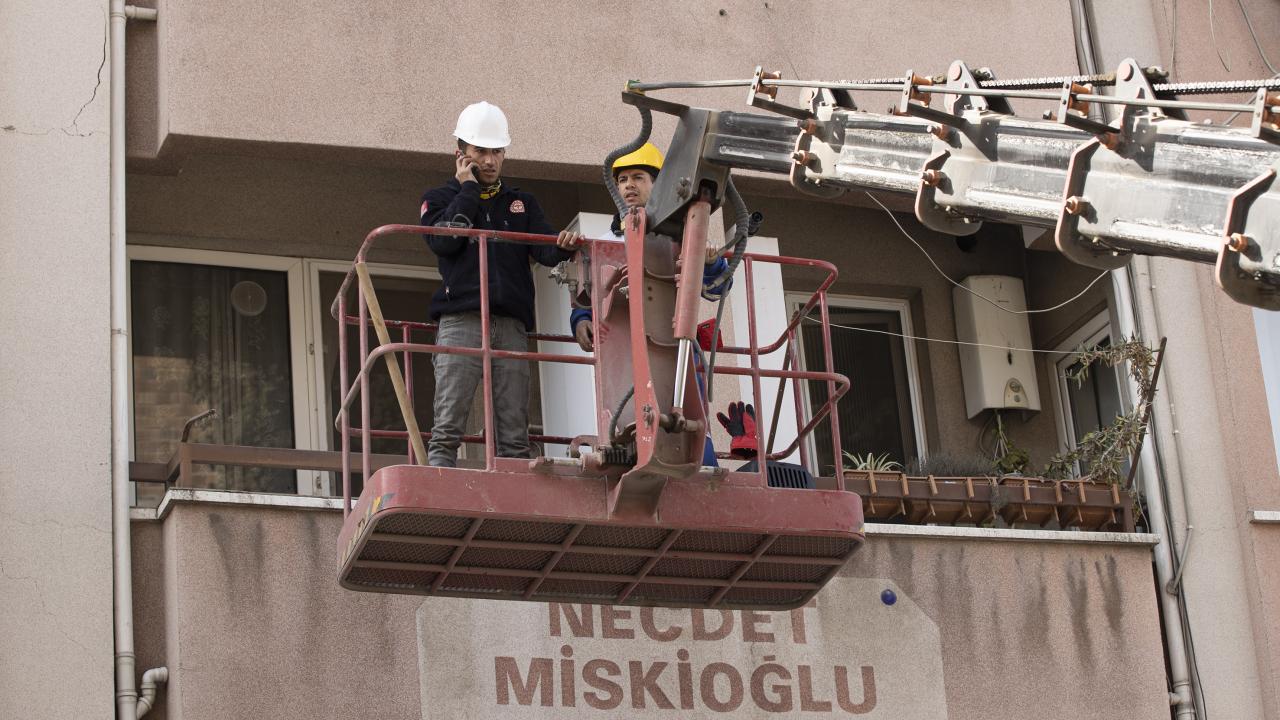 "Merdivenleri zaten kullanamıyoruz. Kapılar da esnediği için açılamıyor. O yüzden vinçle daireye kadar çıkıyoruz. 9`uncu kata kadar çıktığımız oldu. Çok sıkıntılı binalara da giriyoruz. Orada olduğumuz zaman sallantılar oluyor. Hemen vinçle aşağı iniyoruz. Geçmesini bekliyoruz ve tekrar devam etmezse artçılar yeniden çıkıyoruz."