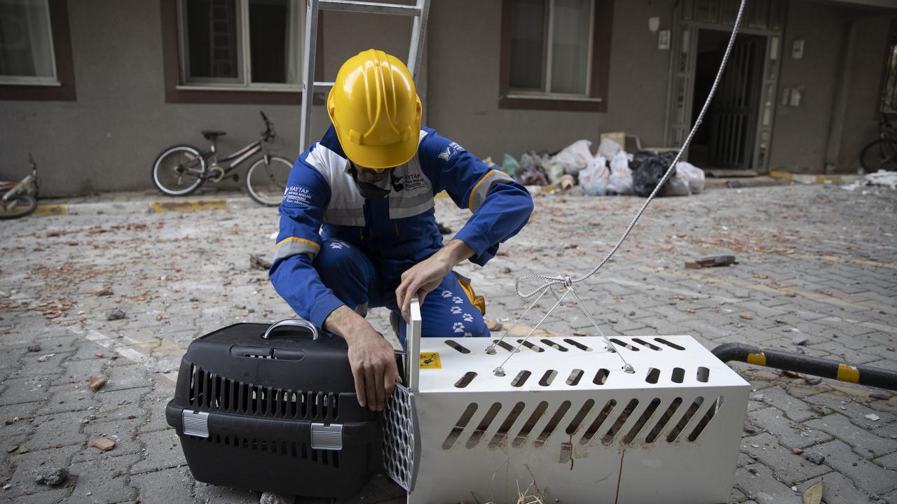 "Bu bizi korkutuyor. Yıkılmış duvarların arasından geçiyoruz. Geçtiğimiz yerlerde sıkıntı oluyor ama süreci kısa tutmaya çalışıyor. 3-5 dakika arasında yakalayamadığımız kediler için kapan kurup çıkıyoruz. 8, 10, 12 saat bekleyip tekrar binalara giriyoruz. Aç oldukları ve korktukları için kendi sahiplerine bile yaklaşmıyorlar. Bazen kendileri çıkıyorlar. Bazen de direkt yakalamaya çalışıyoruz."
