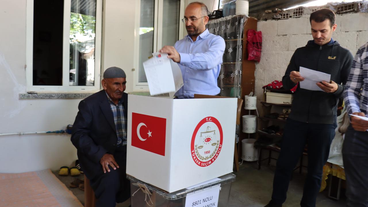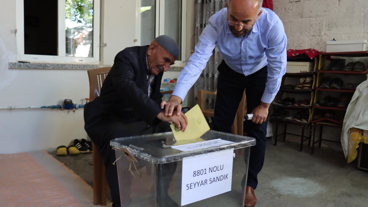 Van`ın Başkale ilçesinde hastalığı ya da engeli nedeniyle evinden çıkamayan seçmenler, `seyyar sandık`larda tercihini yaptı.
