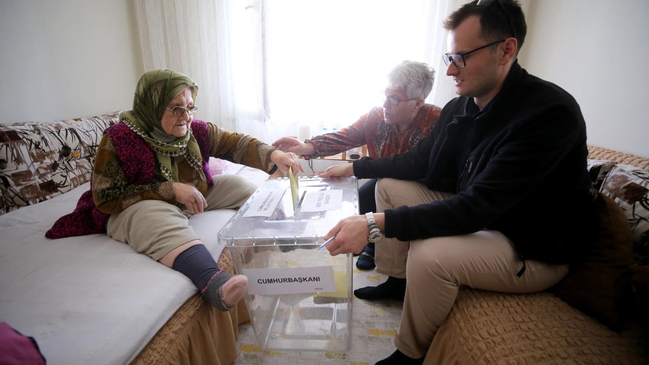 Kırklareli`nde hastalığı ya da engeli nedeniyle sandık başına gidemeyen seçmenler, `seyyar sandık` uygulamasından faydalanarak oylarını kullanıyor.