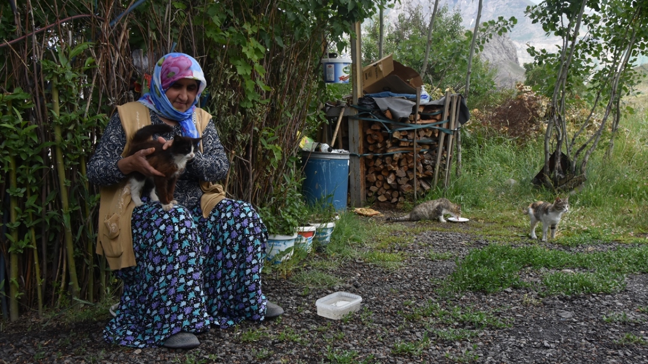 Hakkari'de sokak hayvanlarına duyarlılığıyla bilinen 55 yaşındaki Hatice Yılmaz, yaşadığı sağlık sorunlarına aldırmadan yıllardır sahiplendiği kedilere evinde özenle bakıyor.