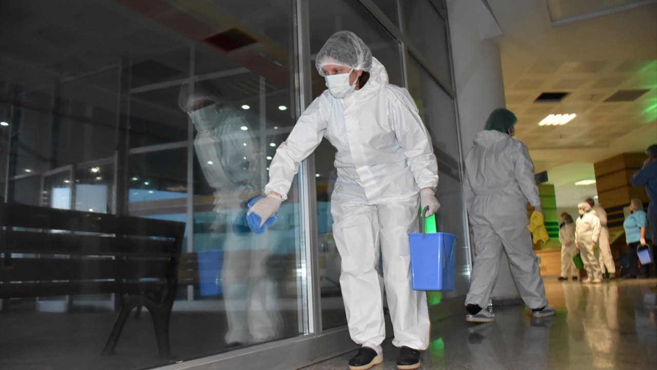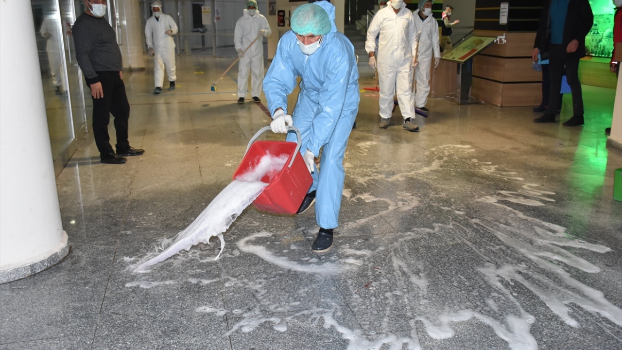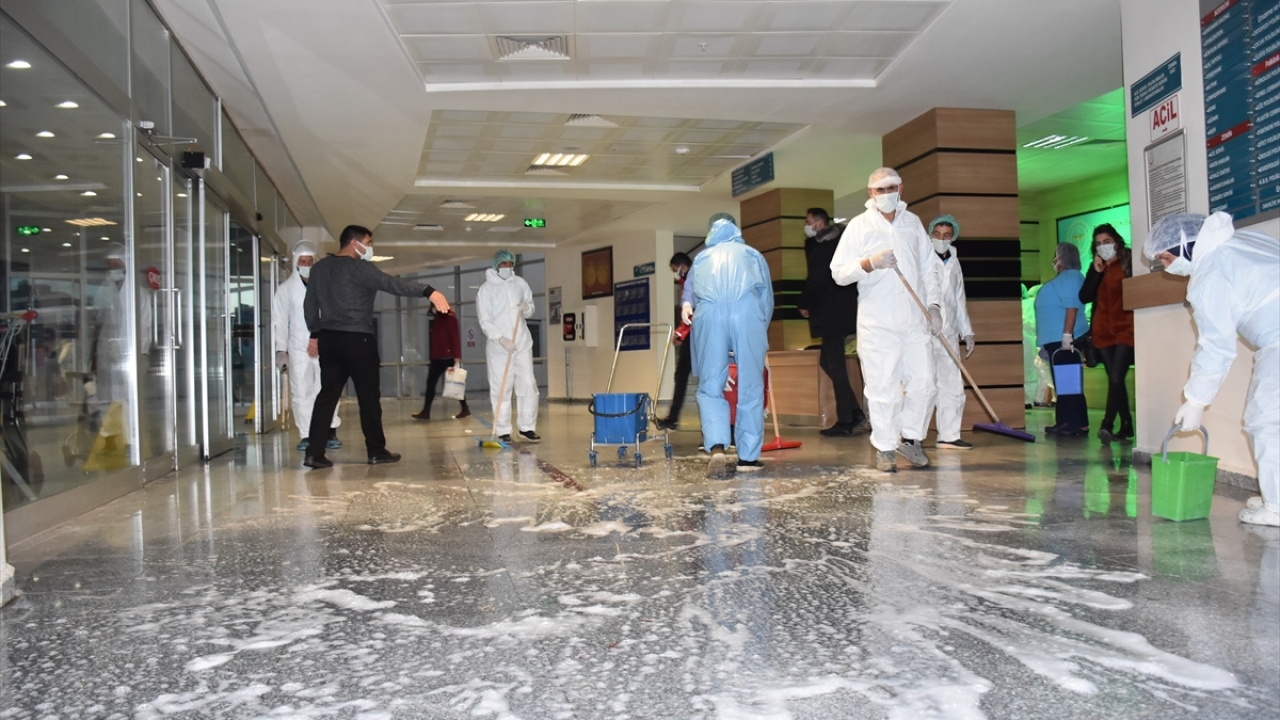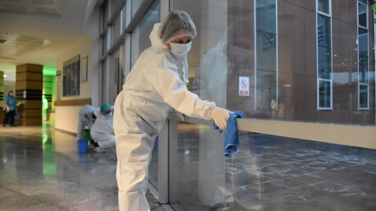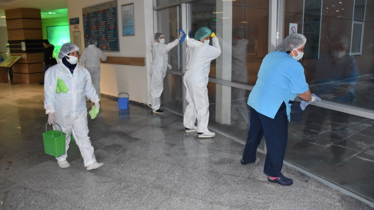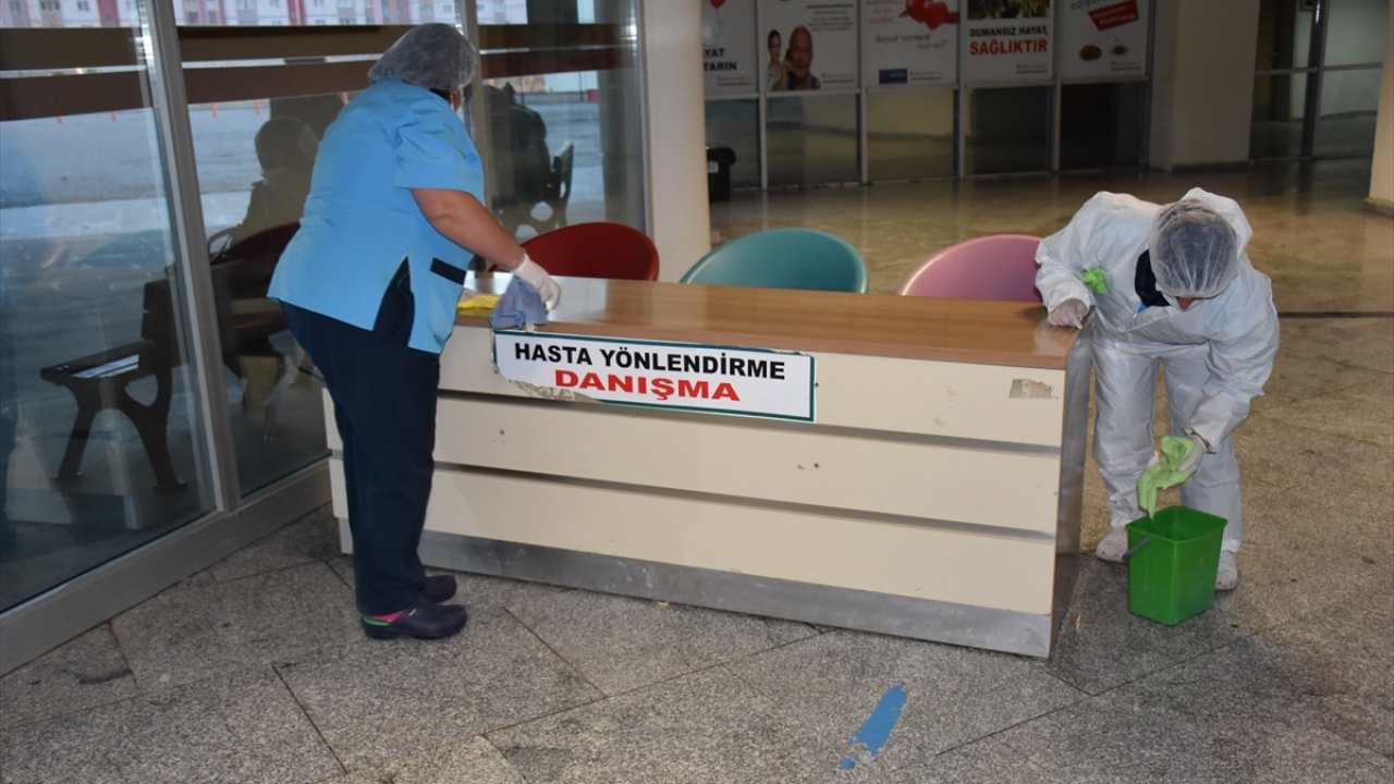 Her saat vatandaşların temas ettiği yerler başta olmak üzere hastanenin tüm servis, oda ve ortak kullanım alanlarını deterjan ve dezenfektan ile yıkayan görevliler, katı atıkları da özenle toplayarak imha edilmesini sağlıyor.