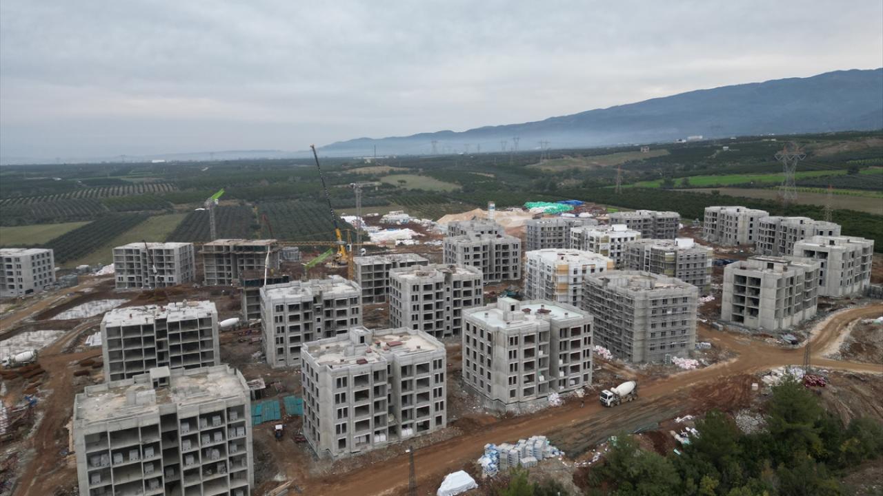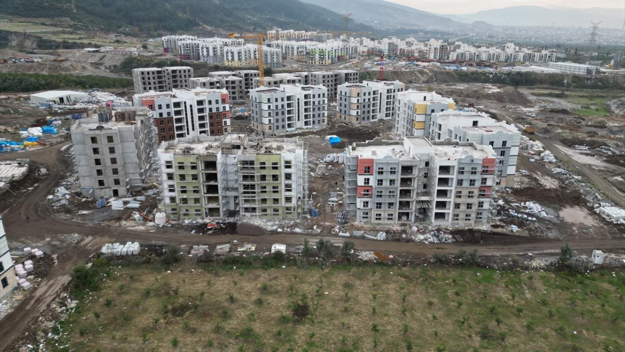 Kahramanmaraş merkezli depremlerden etkilenen Hatay genelinde Toplu Konut İdaresi Başkanlığınca (TOKİ) depremzedeler için yapımına başlanan konutlarda çalışmalar devam ediyor.