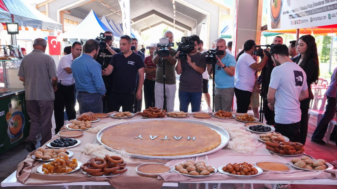 Hatay`ın meşhur künefesi, kağıt kebabı, acılı salçası, halhalı zeytini, defne sabunu, özel soslu döneri, baharatları, ipek kumaşları ve birçok yöresel ürün satışa sunuldu.