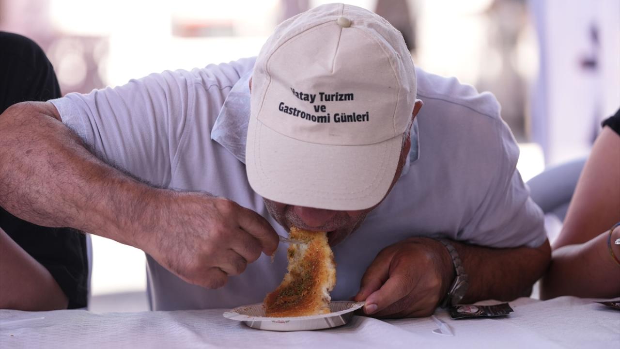 En hızlı künefe yeme yarışmasını kazanan Murat Yüzükak`a ise Hatay ürünlerinin yer aldığı hediye paketi verildi.