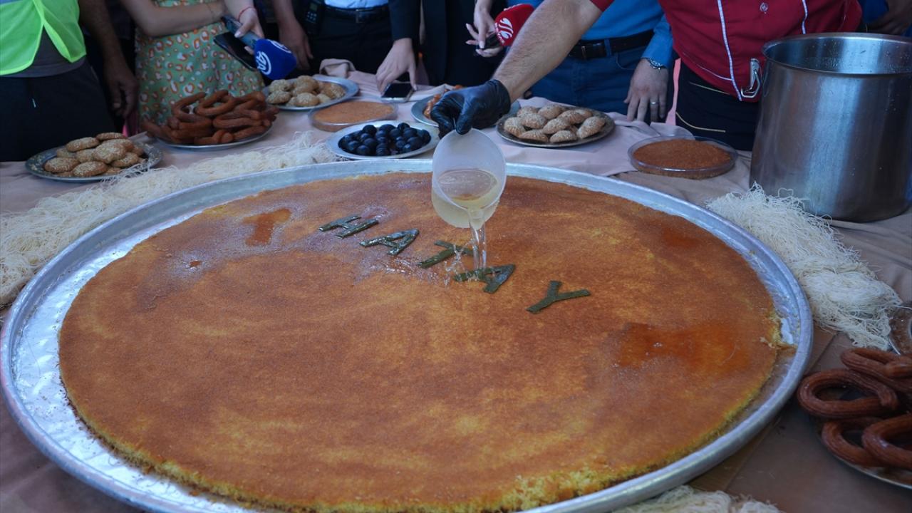 Etkinlikte, 2 metrelik tepside yapılan yaklaşık 1 tonluk künefe ziyaretçilere ikram edildi.