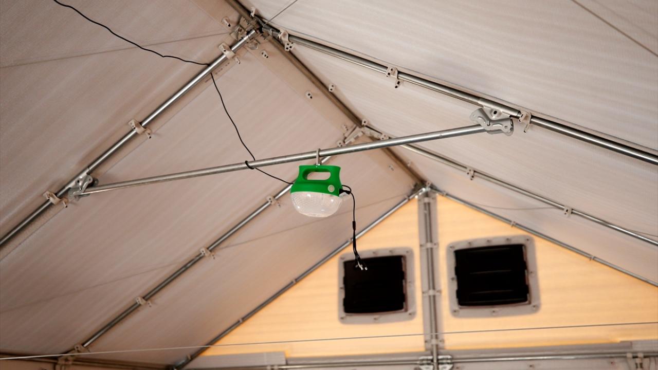 Kahramanmaraş merkezli 6 Şubat'ta meydana gelen depremlerden etkilenen Hatay'ın Hassa ilçesinde 600 depremzede, aydınlatma için gereken elektriği üreten ısı yalıtımlı çadırlarda kalıyor.