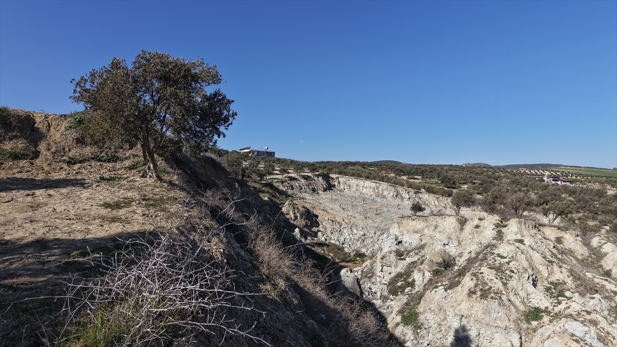 Genişliği 200, derinliği ise 50 metre olan fay yarığının çevresinde çok sayıda zeytin ağacı yer alıyor.