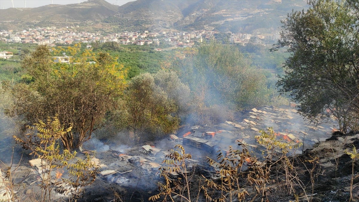 Hatay'ın Samandağ ilçesinde bahçede çıkan yangın nedeniyle çok sayıda arı kovanı zarar gördü.