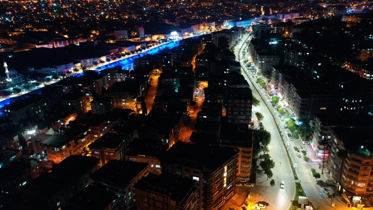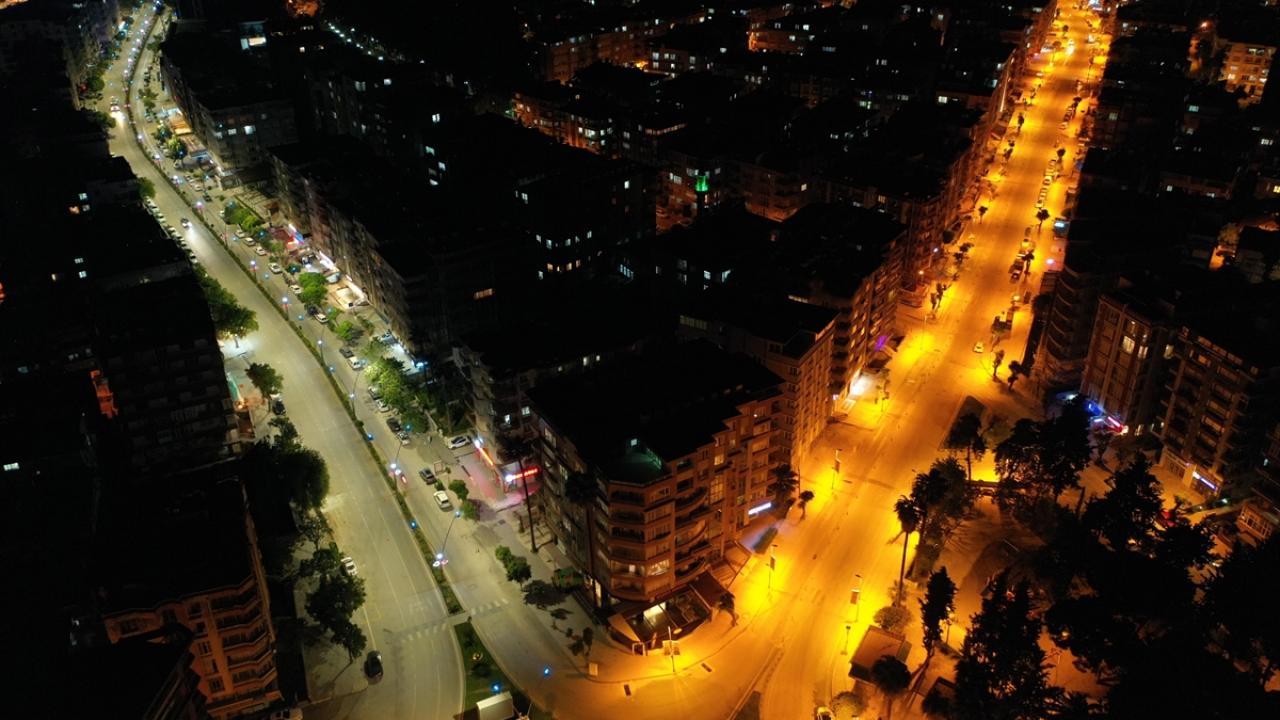 Cumhuriyet Meydanı, Atatürk Caddesi, Vali Ürgen Paşa Bulvarı ve Asi Nehri yürüyüş yollarındaki sakinlik, akşam saatlerinde dron ile havadan çekilen görüntülere yansıdı.