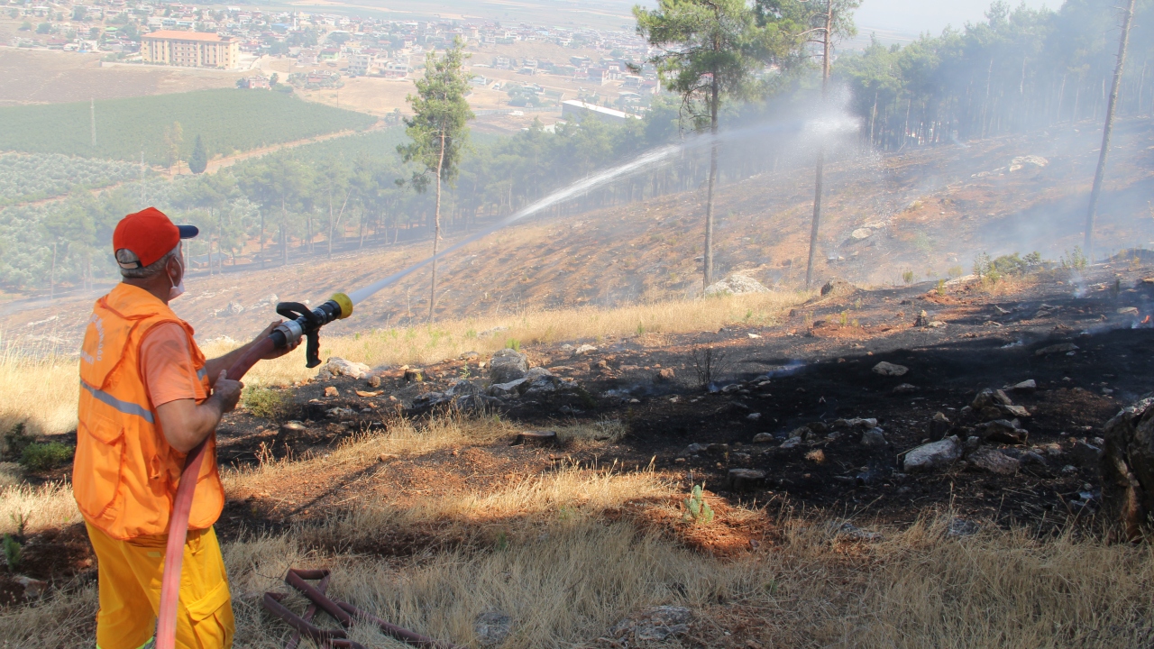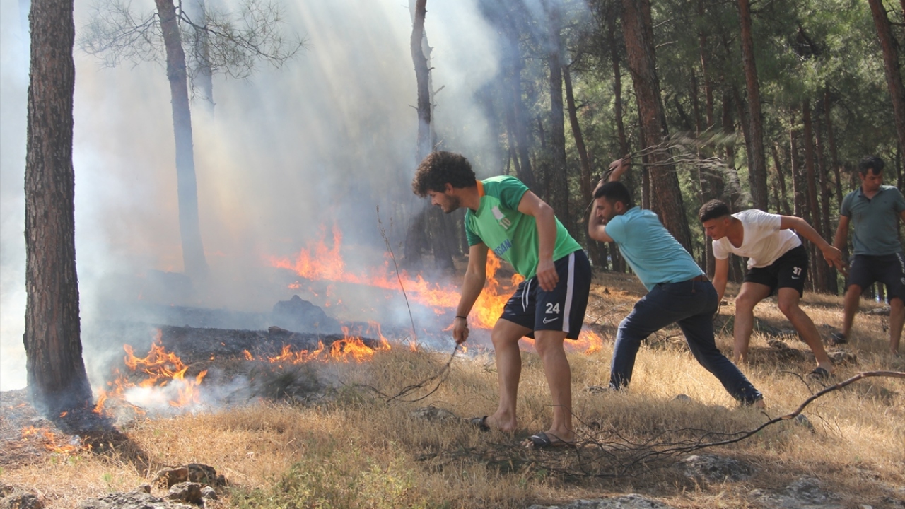 Hatay'ın Kırıkhan ilçesinde çıkan yangında yaklaşık 4 hektar ormanlık alan zarar gördü. İhbar üzerine yangına 6 arazöz, 2 ilk müdahale aracı ve 2 itfaiye aracı ile müdahale edildi. Vatandaşlar da söndürme çalışmalarına destek verdi. Bölgede soğutma çalışmaları sürüyor.