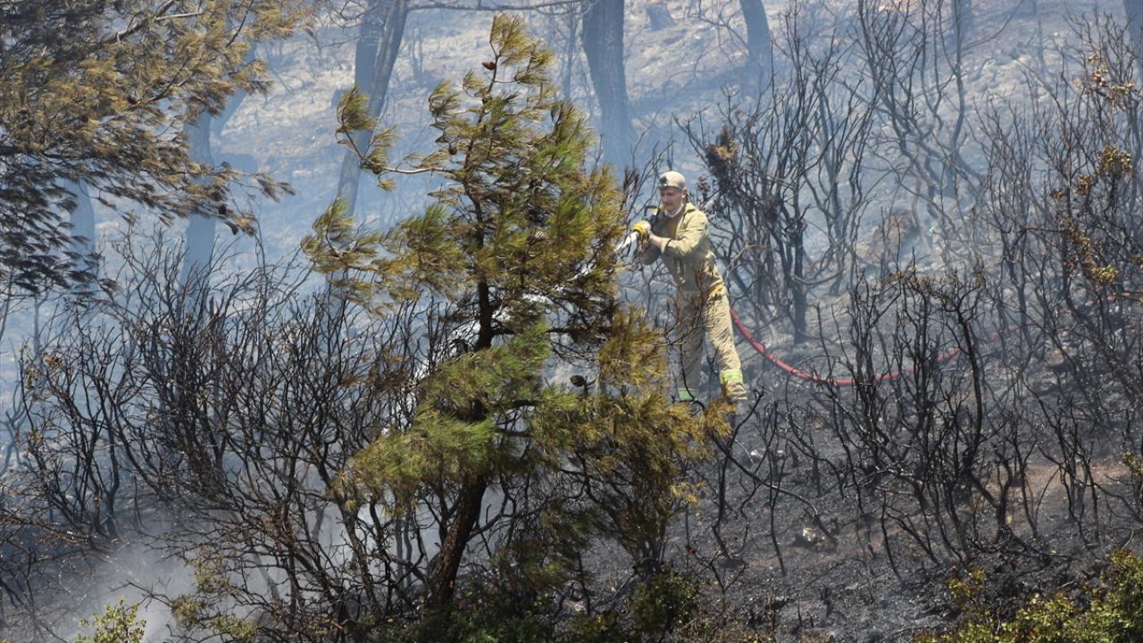 Ekiplerin havadan ve karadan müdahalesiyle söndürülen yangında, yaklaşık 5 dönümlük ormanlık alan zarar gördü.