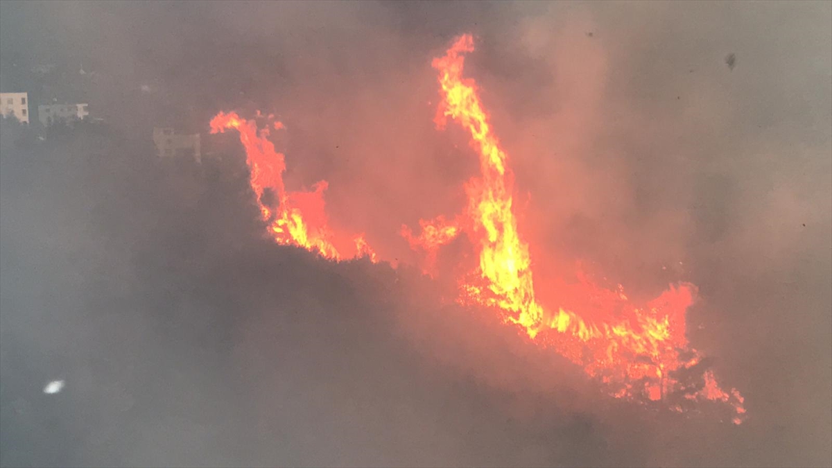 Hatay'ın İskenderun ilçesinde çıkan orman yangınına havadan ve karadan müdahale ediliyor.
