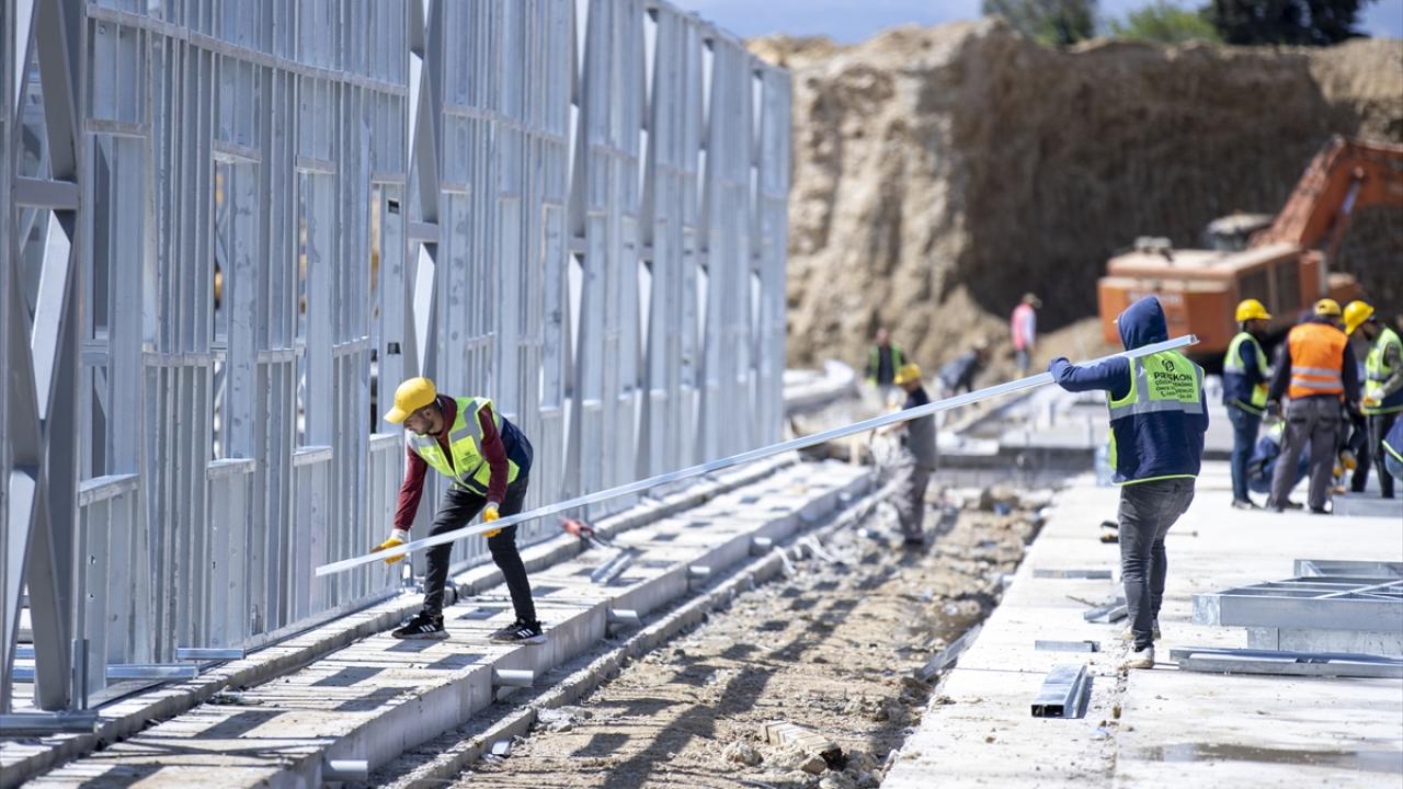 "Asrın felaketi" olarak nitelendirilen 6 Şubat`taki depremlerde büyük hasar gören Defne ilçesi Bostancık Mahallesi`nde 24 Mart`ta temeli atılan hastane inşaatında çalışmalar sürüyor. Çok sayıda personelin 24 saat esasına göre çalıştığı hastane inşaatı yükseliyor.
