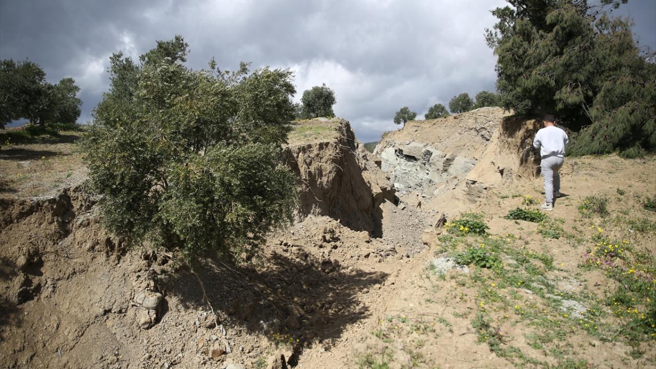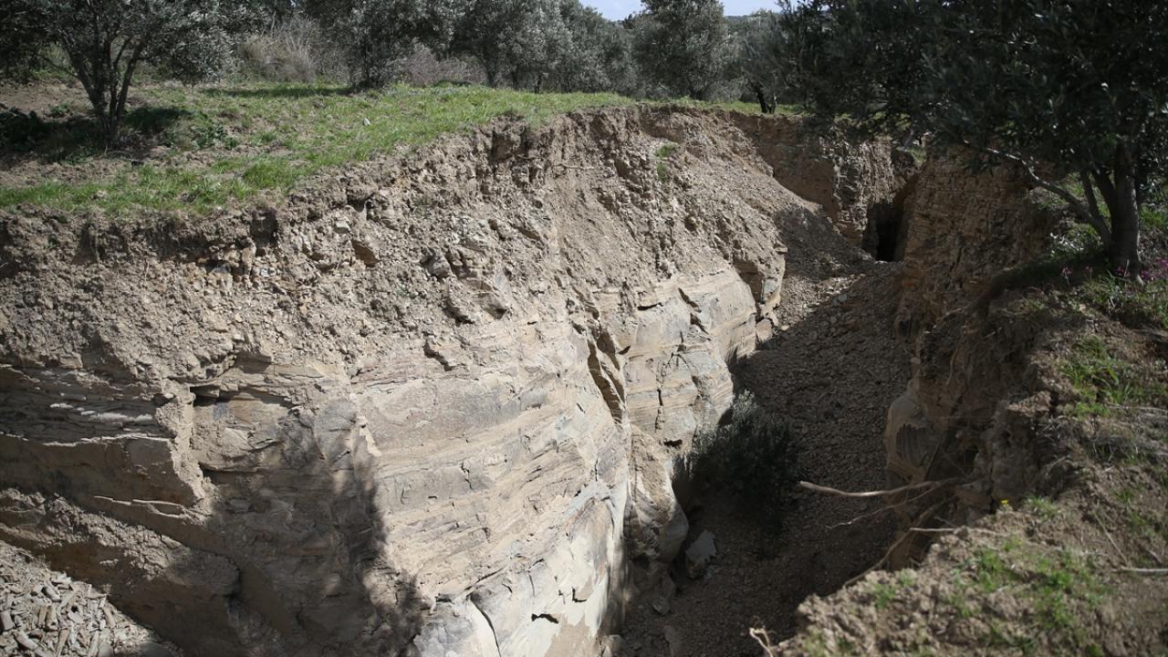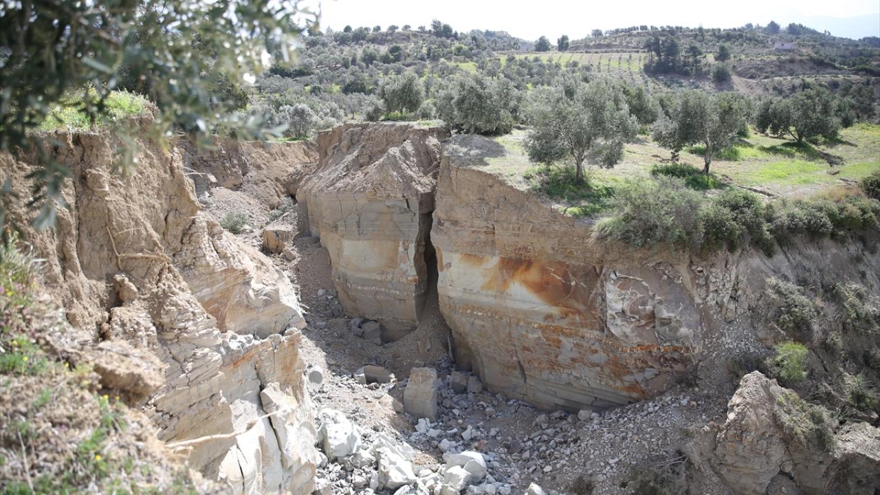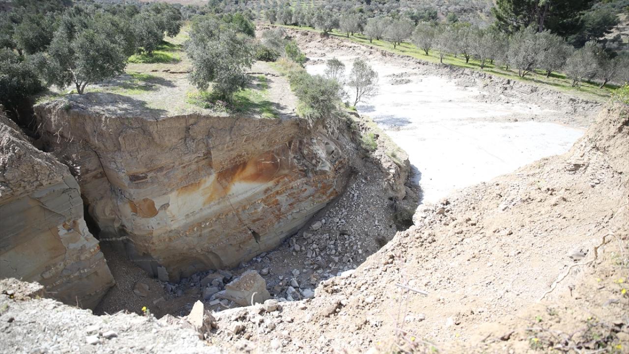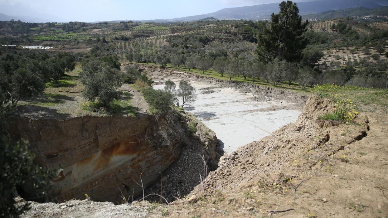 Kahramanmaraş merkezli 6 Şubat'ta meydana gelen depremlerde, Hatay'ın Defne ilçesindeki bir zeytin bahçesinde 15 metre genişlik ve 10 metre derinlikte yarık meydana geldi.