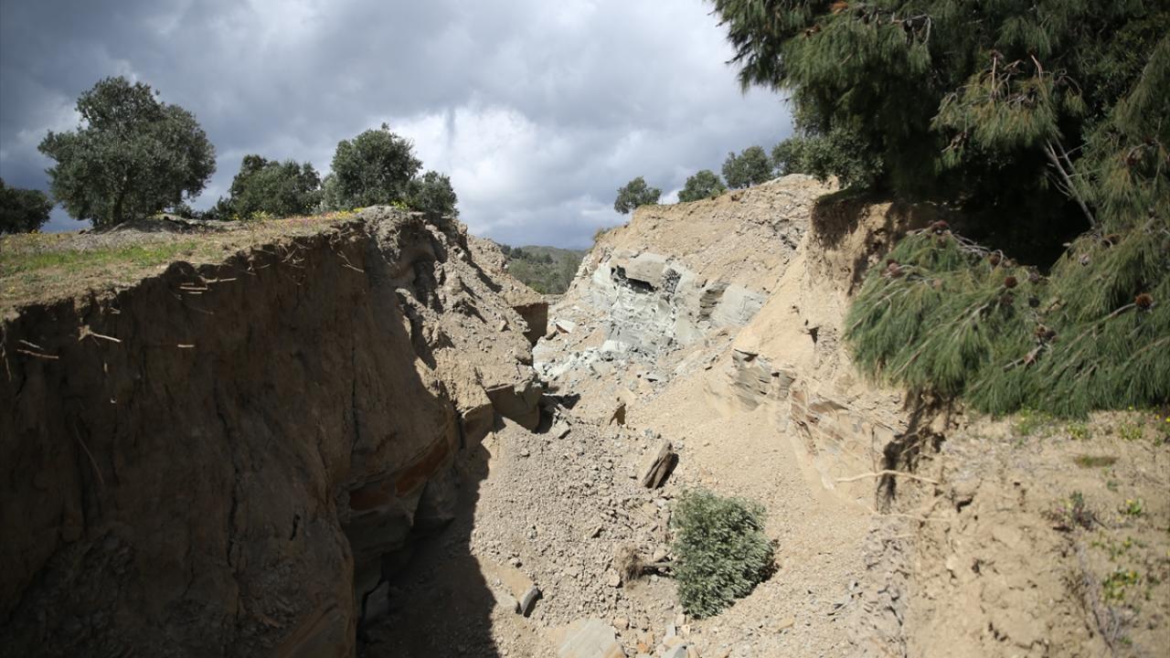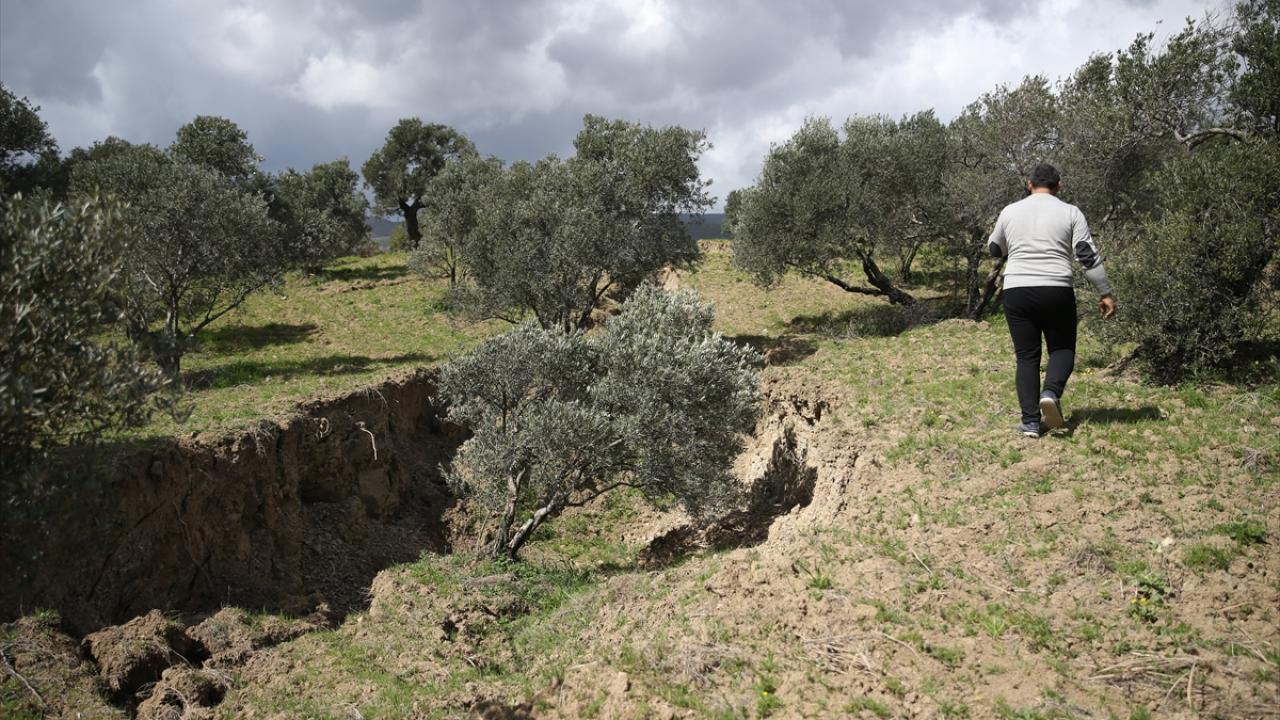 Farklı noktalarda benzer toprak kaymalarının yaşandığını, büyük bir tehlike atlattıklarını belirten Akınay, "Bu tarla birleşikti, daha önce çok geldim. Buralarda zeytin hasadına geliyorduk. Tarla böyle değildi. Ağaçlar birleşikti, şimdi hepsi yamulmuş. Müthiş bir boşluk oluşmuş. Sanki beton dökülmüş gibi bir zemin var." şeklinde konuştu.