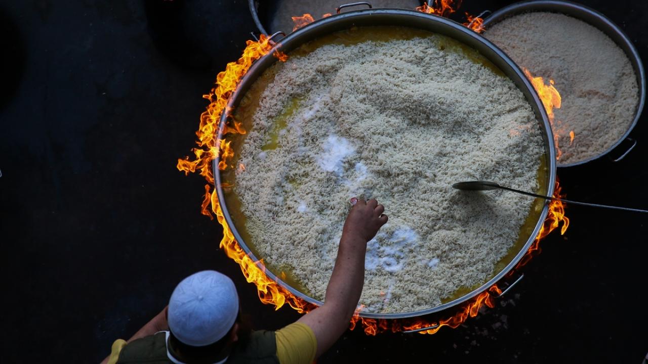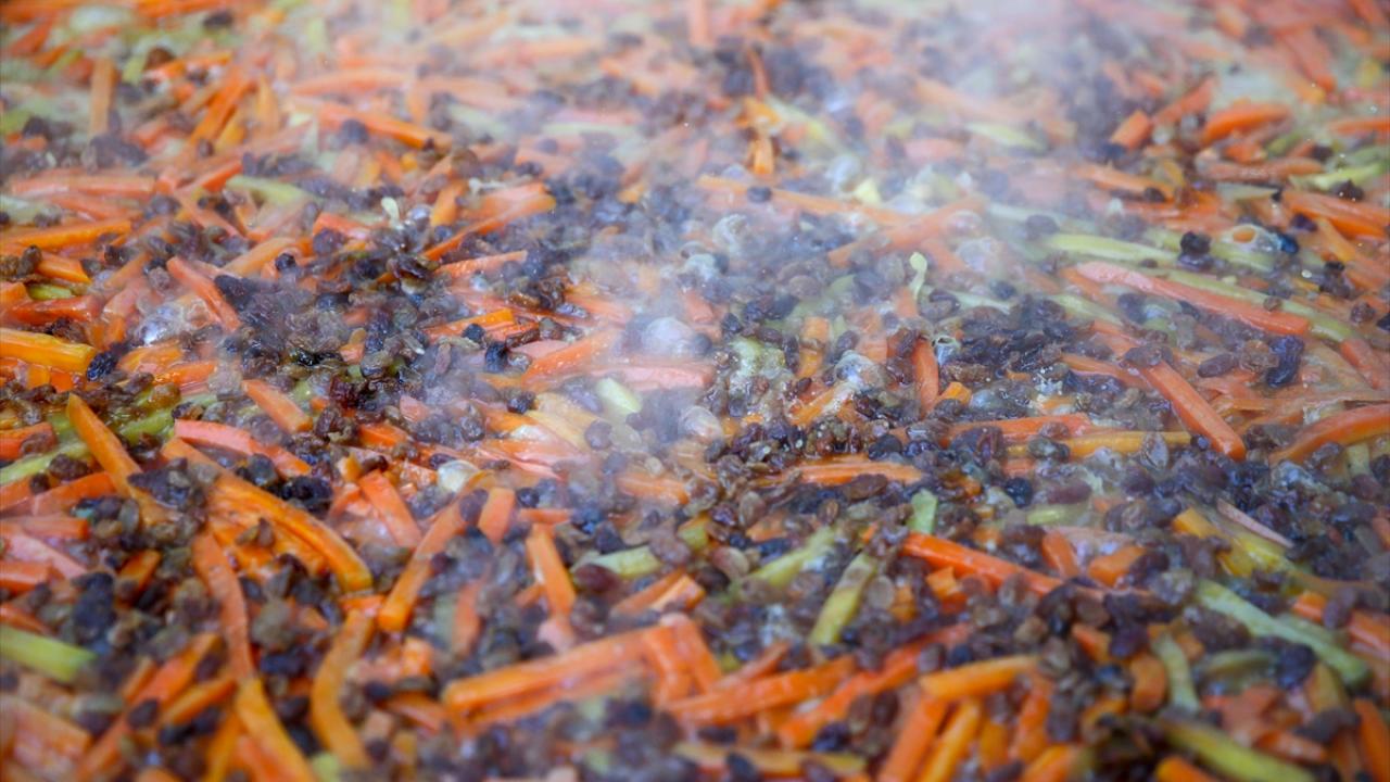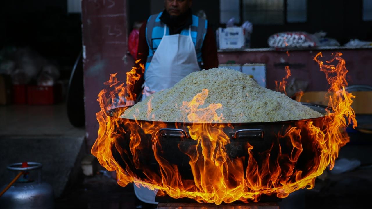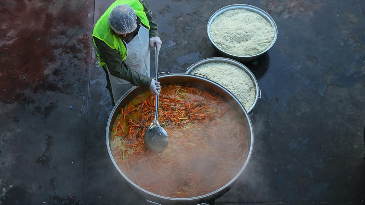 Hatay'da depremzedeler için dev kazanlarda Özbek pilavı pişiriliyor