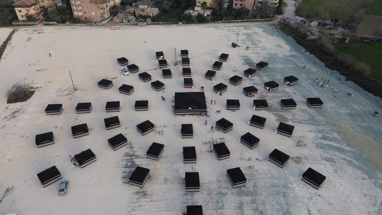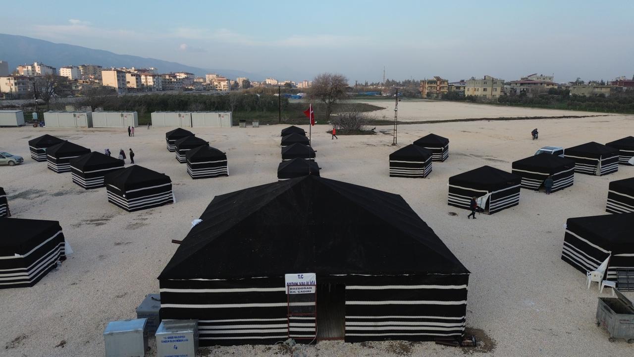 Hatay'da afetzedeler için geçici barınma merkezi çalışmaları devam ediyor. Aydın Bozdoğan Kaymakamlığı öncülüğünde, "Yörük çadırı" olarak bilinen kıl çadırlar kuruldu. 12 metrekarelik çadırlarda, 4 kişilik ranza, yatak, masa ve sandalyenin yanı sıra sobada yer alıyor.