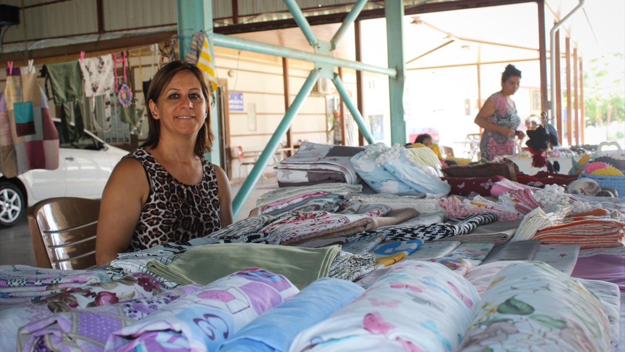 Ürünlerini özenle stantlara dizerek satan kadınlar, deprem psikolojisinden uzaklaşıp sosyalleşme fırsatı da buluyor.