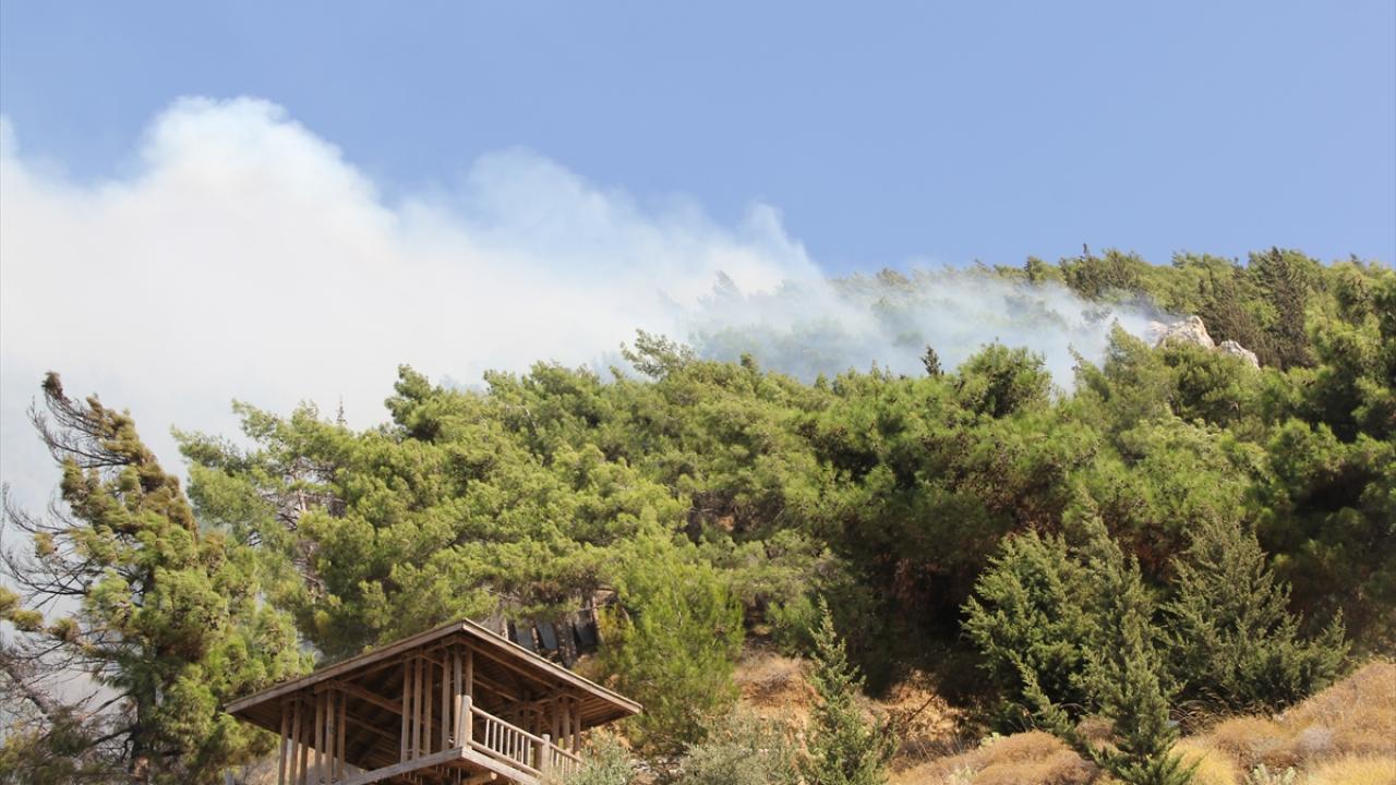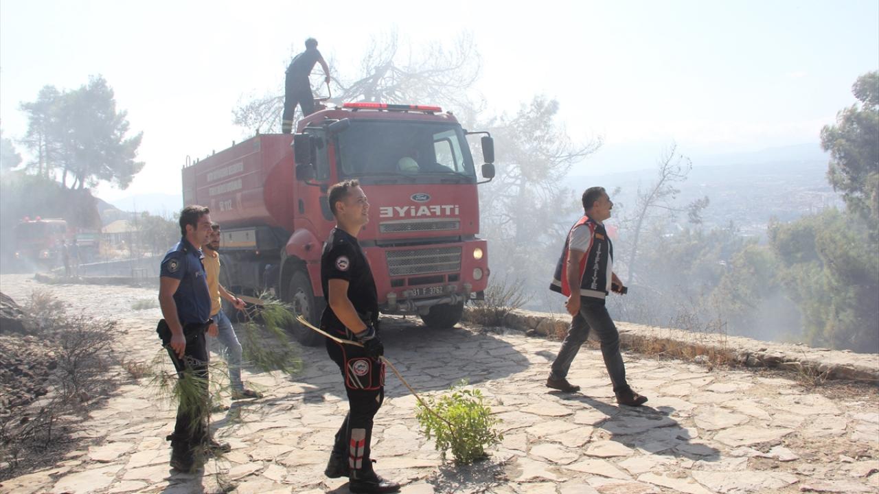 Hatay'ın Antakya ilçesinde, Habib-i Neccar Dağı eteklerinde çıkan orman yangını kontrol altına alınmaya çalışılıyor.